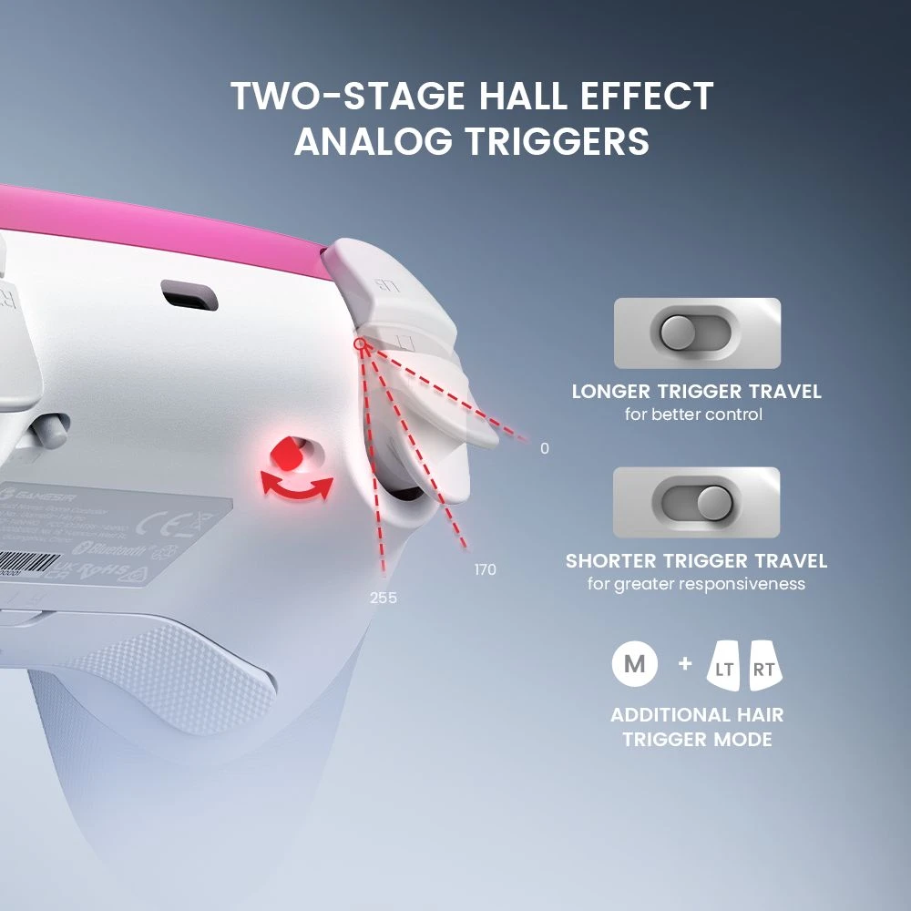 Az 1000 mAh-s akku hosszú játékidőt biztosít, a mellékelt töltőállomással pedig elég csak rárakni a kontrollert, és már tölt is – nem kell többé lemerült eszköz miatt mérgelődnöd meccs közben. A GameSir Connect alkalmazásokkal extra finomhangolásokat végezhetsz: stick és trigger holt zónák, rezgésintenzitás, firmware frissítés vagy akár gombtesztelés – minden adott, hogy úgy játszhass, ahogy neked a legkényelmesebb.