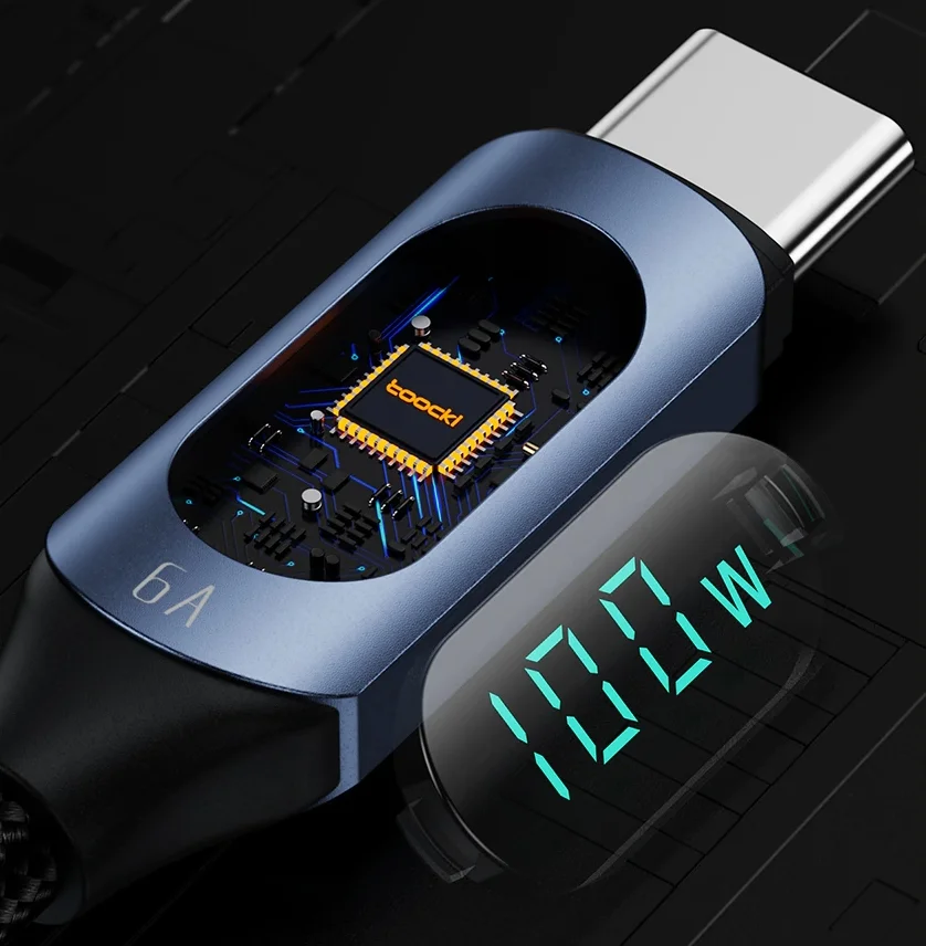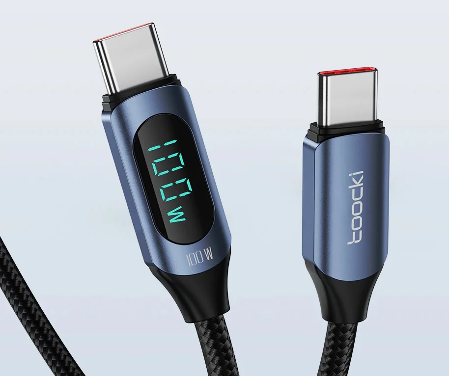 Nem túlzás, hogy a Toocki pár hónap leforgása alatt erős szereplő lett az Aliexpressen, a töltők szegmensében. Eleinte csak kábelekkel robbantak be, aztán szép lassan jöttek sorra a töltők és egyéb kiegészítők. Mindenkinek melegen szoktuk ajánlani, mert viszonylag olcsók, és a minőségre eddig nem volt panaszunk, pedig több terméküket használjuk már egy ideje. Type-C kábelből az alábbi a csúcstermékük, hiszen az egy dolog, hogy 100 wattos PD töltés mehet át rajta, de ráadásul még egy kijelző is került rá, ami pedig igazán kivételes a kábelek esetében. Nagyon hasonlít a BlitzWolf BW-TC23-ra, és árban is közel vannak egymáshoz, de a Toocki terméke az olcsóbb. A kábel mindkét vége Type-C, szövetharisnyával van bevonva, a feje pedig részben fémből készült. A kis kijelző hatalmas extra rajta, amin mutatja az aktuális töltési teljesítményt.
