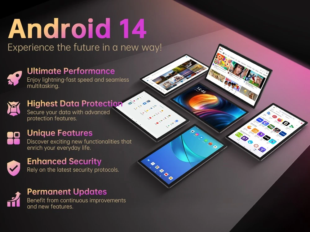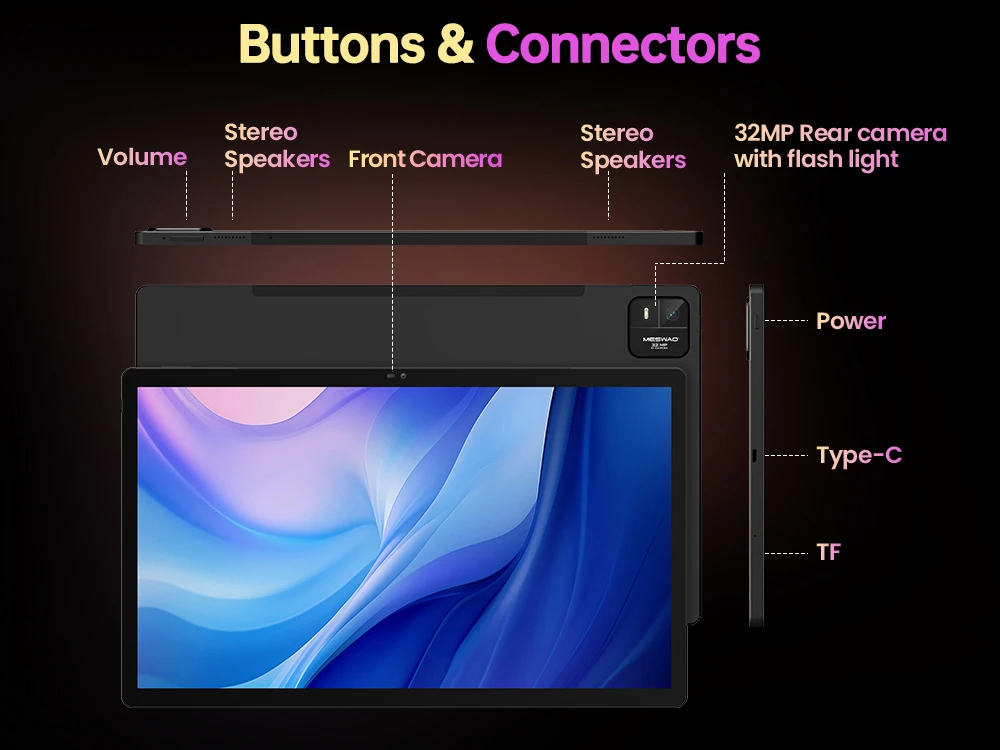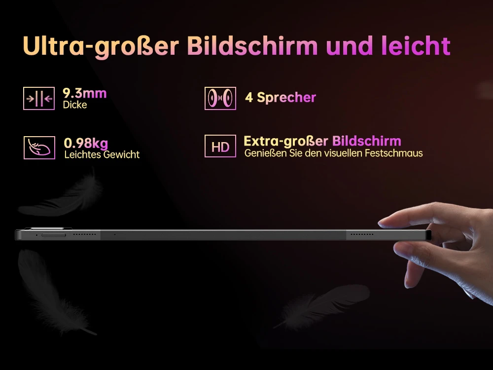 Kapcsolódásban is hozza a kötelezőt: Android 14 rendszerrel érkezik, támogatja a WiFi 5-öt, Bluetooth 5.0-t (10–30 méteres hatótávval), USB Type-C portot, TF kártyahelyet és a hub kompatibilitást is. Otthoni filmnézésnél, oktatásnál, távmunkánál vagy családi használatnál tökéletesen helytáll. A mérete viszont önmagáért beszél: 36,9×22,3×1,1 cm és 1,06 kg, vagyis ez már nem kézben lóbálós tablet, inkább asztalon vagy ölben használós.