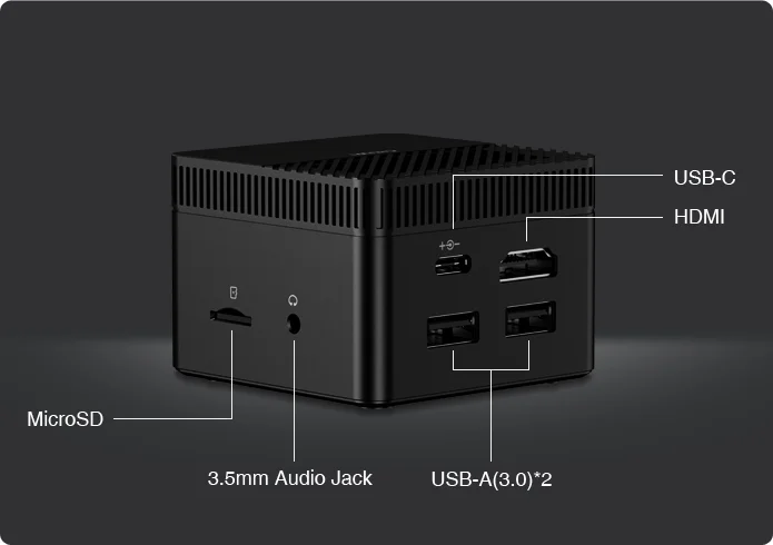 Portok tekintetében lenyom egy csomó Mini PC-t, mert van rajta SD-kártya hely, HDMI csatlakozó, 2 db USB 3.0, egy Type-C port és egy jack csatlakozó is. Ennél többet nem várhatunk el egy eszköztől, ami mindössze 61x61x43 mm-es és 127 gramm. Már Gearbesten és Geekbuyingon is listázott a gép, de nyilván készletük még nincsen. Ezeken a shopokon egyelőre 500 dollárra van beárazva, ami nyilvánvaló hülyeség, hiszen az Indiegogo kampányon belül lehet rendelni, és mindössze 150$, tehát körülbelül 46 000 forint. Alig várjuk, hogy megjelenjen minden kínai boltban, hátha még ennél is olcsóbb lesz ez a ’törpeerőmű’.