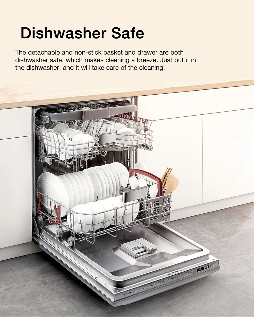 Az elejére kerültek a vezérlőgombok, de a legjobb, hogy még a mobilotokkal is tudjátok irányítani, hiszen okoskészülékről beszélhetünk. Választhattok az előre beprogramozott sütési üzemmódok közül, időzíthetitek, vagy akár távolról is elindíthatjátok. A kosara könnyedén tisztítható, pláne, hogy még a mosogatógépbe is bedobhatjátok.