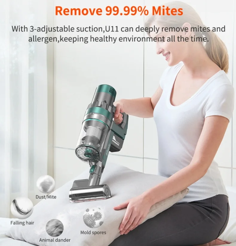 Az Ultenic U11 egy remek vezeték nélküli porszívó, melynek maximális szívóteljesítménye 25 000 pascal, ezzel az értékkel egy rakás konkurens terméket utasít maga mögé. Egyik legnagyobb előnye, hogy a készülék magától felismeri a szőnyegeket, ekkor megemeli a teljesítményt, hogy a mélyebb rétegek közül is eltávolítsa a piszkot. Az akkumulátora kivehető és külön is tölthető, ami roppant praktikus és kényelmes, hiszen nem kell az egész gépet a konnektor mellé cipelni. Egy töltéssel akár 55 percen keresztül is takaríthattok vele.