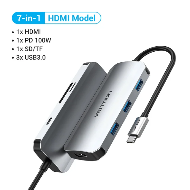 ![]() | Vention 7-in-1 HDMI+TF+SD model 3 db USB 3.0 1 db Type-C 100 W PD 1 db HDMI 1 db SD/TF kártyaolvasó | VENTION701 + 5% kedvezmény Aliexpress coinokkal | 9 550 Ft |