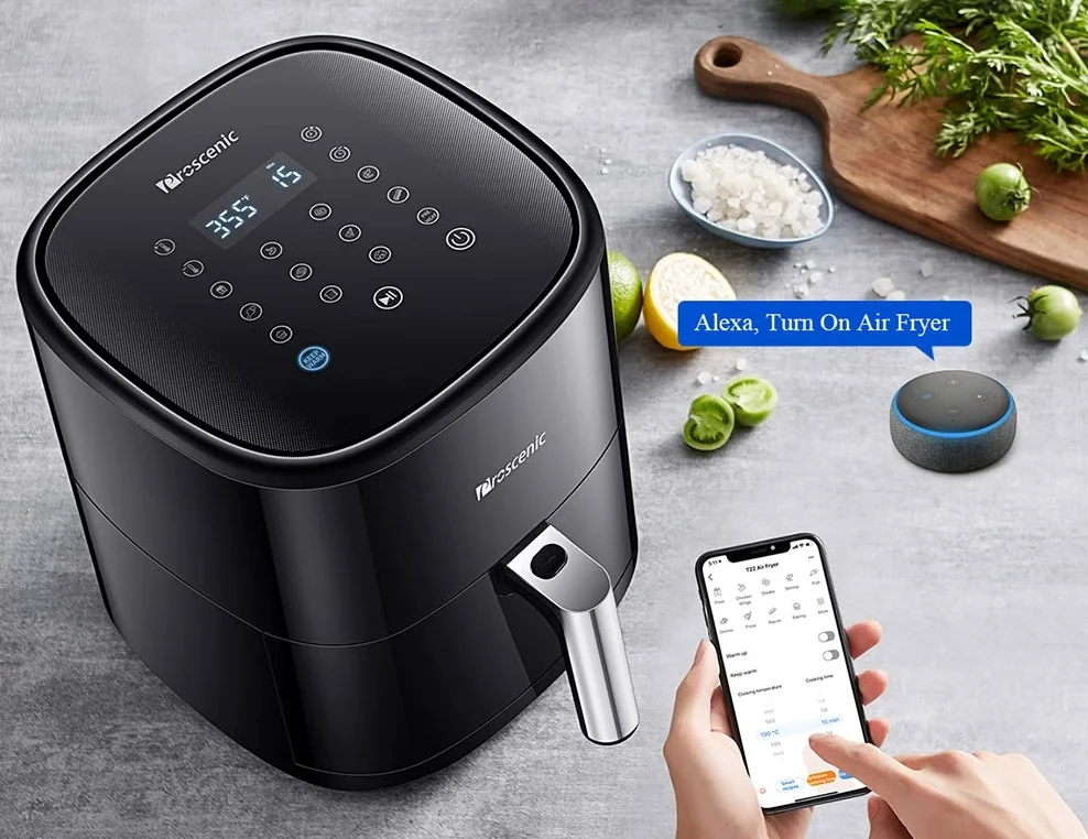 A Proscenic T22 névre keresztelt forrólevegős fritőz 36,1×27,1×30,6 centiméteres méreteket kapott, ami azt jelenti, hogy simán elfér egy kisebb konyhában, nyaralóban, vagy akár a kollégiumban is. A kosara 5 literes, ami nagyobb mint az átlag, vagyis több ételt tudtok belepakolni, ráadásul szétszedhető és akár még a mosogatógépbe is betehető. Az 1500 wattos teljesítménnyel bíró készülék sütés közben folyamatosan keringeti a finomságok körül a forró levegőt, melyek így egyenletesen fognak átsülni. A legjobb az egészben, hogy extra zsiradékot vagy olajat nem muszáj hozzáadnotok a sütéshez, vagyis egészségesebben és pénztárcakímélőbb módon készíthetitek el az ebédet vagy a vacsorát.
