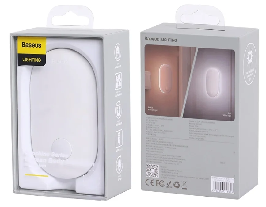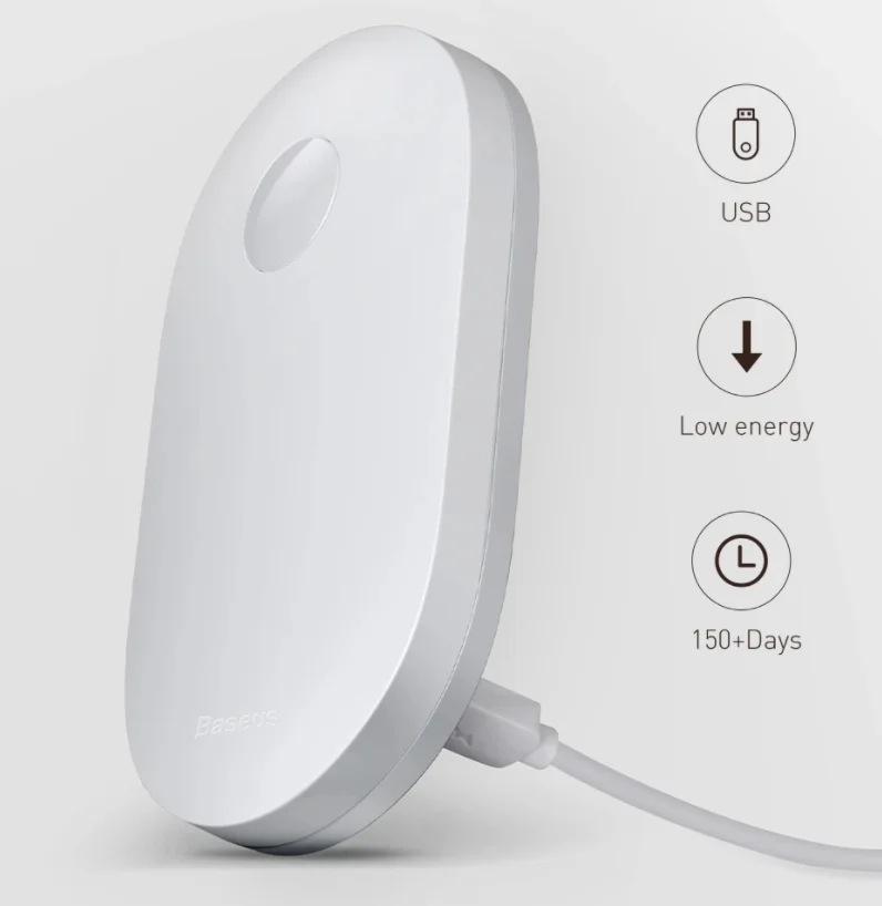 A Baseus éjjeli fénye letisztult, minimalista külsővel rendelkezik, melynek köszönhetően minden lakásban jól fog mutatni. Az elején található a mozgásérzékelő, a LED világítás azonban nem ide, hanem a hátuljára került, vagyis a mögötte lévő felületről fog visszaverődni a fény. A készülékhez jár egy mágneses tartó is, aminek a hátsó részén ragasztó van, vagyis könnyedén felragaszthatjátok a falra, szekrényre, vagy ahova szeretnétek. A lámpát a lakás bármely pontján elhelyezhetitek, hiszen beépített, 500 mAh-s akkumulátorral rendelkezik, melyet a Type-C kábel segítségével tudtok feltölteni. Az üzemideje elég jó, a gyártó állítása szerint akár 150 napot is kibír. A hátuljára szereltek egy háromállású kapcsolót is, mellyel be- és kikapcsolni, illetve mozgásérzékelős üzemmódba állíthatjátok a kütyüt. A lámpa természetesen csak sötétben villan fel, nappali fényben nem.