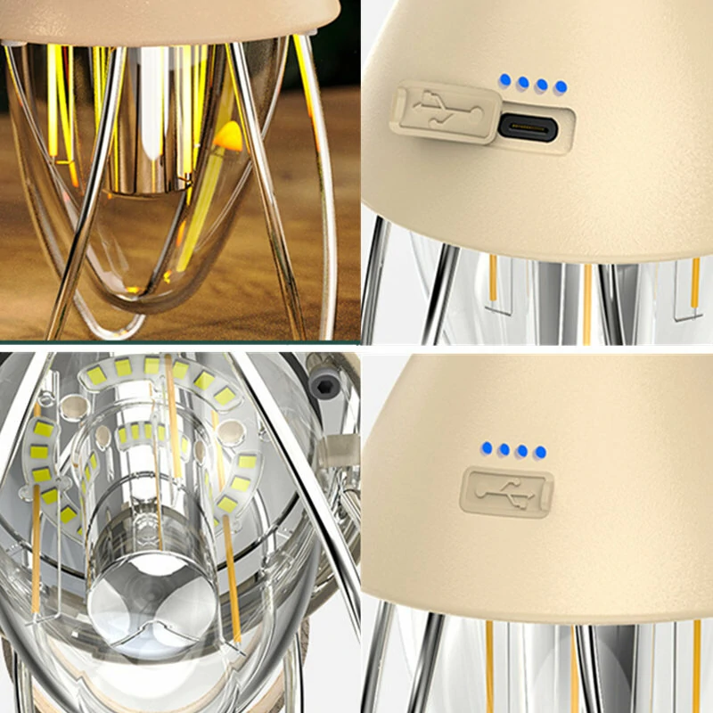 Ezt a kempinglámpát még nem is láttuk Banggoodon, tehát felteszem, hogy egy elég új termékről van szó. Meglátva egyből beugrott a Nitecore LR40, amit nemrég teszteltünk, és egy nagyon hasonló kütyü, csak éppen a neves cég gyártmánya. Ez ellenben egy noname darab, de nem tűnik rossznak. 21,5x10x10 centiméteres, tehát egészen nagy, és 234 grammot nyom. A lámpa rendelkezik egy akasztóval, amivel könnyen felaggathatjuk valahova, a lámpa teste műanyagból készült, a búráját pedig fém lábak védik, amiken meg is áll. Természetesen LED-es, de többféle LED és filament is található benne, ami miatt többféle színben is képes világítani. Van meleg- és hidegfehér módja, valamint a kettő közötti, és lehet állítani a fényerején is. A tetején található a vezérlőgomb, az oldalán pedig a töltő port.