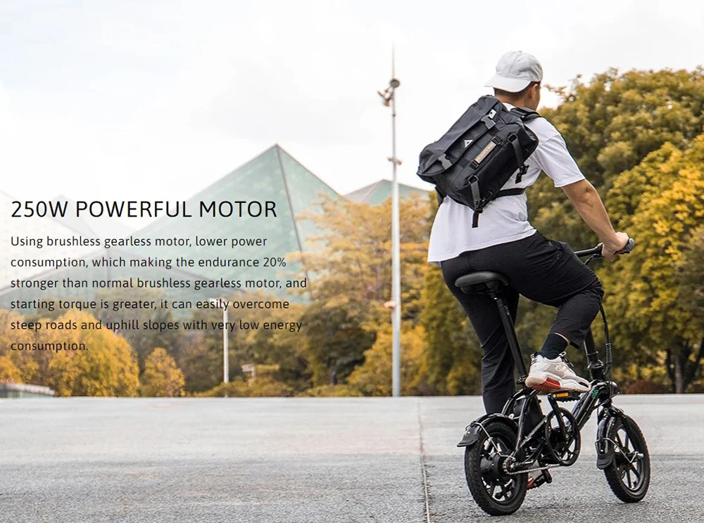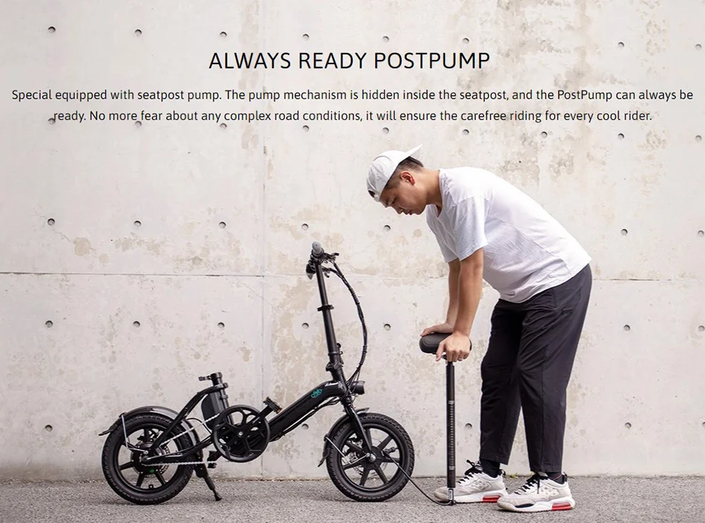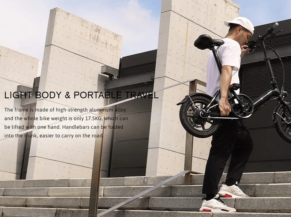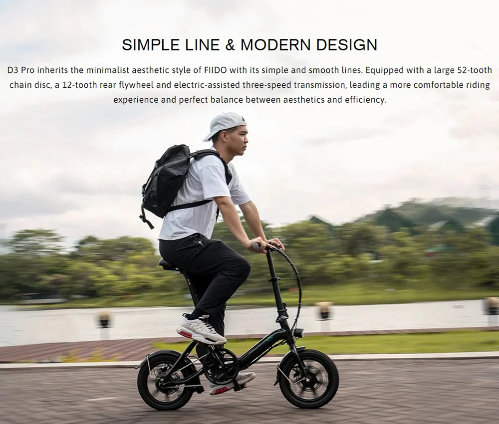 A Fiido D3 Pro külsőre nagyon hasonlít a D3S-re. A bringa 14 colos, kerekeket kapott, mindkettőre tárcsafékeket szereltek. A masszív, alumínium ötvözetből készült vázának köszönhetően strapabíró lett, akár 120 kilogrammos terhelést is kibír, viszont nem nevezhető nehéznek, hiszen mindössze 17,5 kilogrammot nyom. A jármű beljesében egy 250 wattos motor dolgozik, ami akár 25 km/h-s sebességre is képes felgyorsítani a D3 Prót, ráadásul még a 30 fokos emelkedőkkel is megbirkózik a gyártó állítása szerint. A vázába rejtették a 7,5 Ah-s akkumulátort, aminek töltése mindössze 4 órát vesz igénybe. „Teli tankkal”, rásegítéses üzemmódban akár 60 kilométert is megtehettek vele. Az ülés kivehető, ráadásul szükség esetén pumpaként is használható, ami egy hosszabb túra során nagyon jól jöhet. A kormány lehajtható, így könnyebb a tárolása és a szállítása. Elöl és hátul is LED világítással látták el, a hátsó lámpa pedig fékezéskor villogni kezd, így a mögöttetek haladók könnyebben észreveszik ha lassítotok.