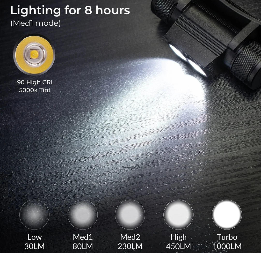 A kínai lámpagyártók között a Sofirn közepes ismertségnek örvend. Akik sokat böngészik az Aliexpresst, azok biztosan találkoztak már velük, akik pedig vásároltak is a termékeik közül, nagy valószínűséggel szeretik is. Ár/érték arányban kifejezetten kedvezők, nincs a termékeiknek fancy csomagolásuk, de maguk a kütyük teljesen jók. A H25S is ezek közül való, 1200 lumen fényerővel, 18650-es akkumulátorral és egy csomó működési móddal. Két darab SST40 LED került bele, a maximális fényereje pedig 1200 lumen, de hatféle működési mód közül választhatunk. A 2200 mAh kapacitású aksi saját gyártmányuk, legalábbis a saját címkéjük van rajta, amivel a lámpa a második fokozaton 8 órát bír üzemelni. Nyilván nagyobb fényerőn kevesebbet, de maxon nem is kell sűrűn használni egy ilyen fejlámpát. A töltéshez nem kell belőle kiszedni a telepet, mert Type-C porton keresztül töltőre lehet dugni.