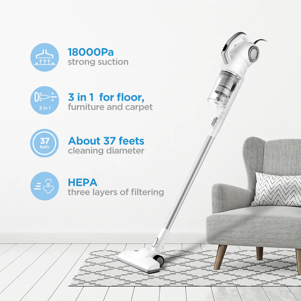Első blikkre akkumulátoros gépnek tűnik a Midea P1, de valójában nem az, hanem vezetékes kiviztelű. Viszont meglepően kicsi a szerkezet, ami a kézben helyezkedik el, mint minden más rúdporszívó esetében. A cső végén van a padlótisztító fej, de adnak hozzá szűkítőt és kefés fejet is. A falra szerelhető tartóállvány szintén a csomag részét képezi. A szívóereje 18 000 Pa, amivel ugyan nem szaggatjuk fel a parkettát, de korrektül lehet vele takarítani. 5 méter hosszú kábel tartozik hozzá, aminek a vége EU dugós.