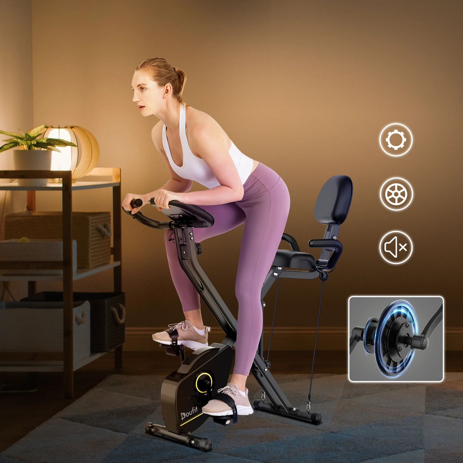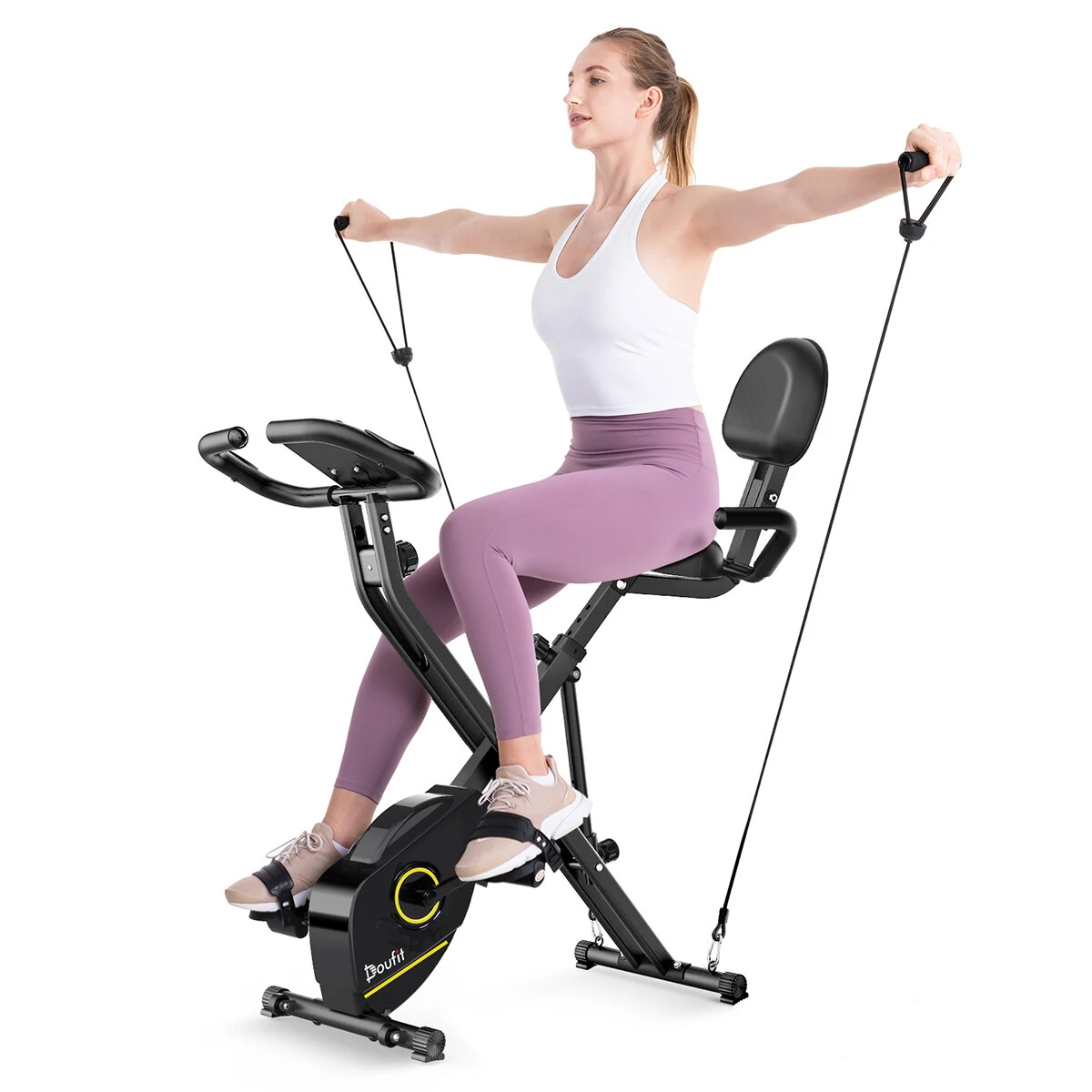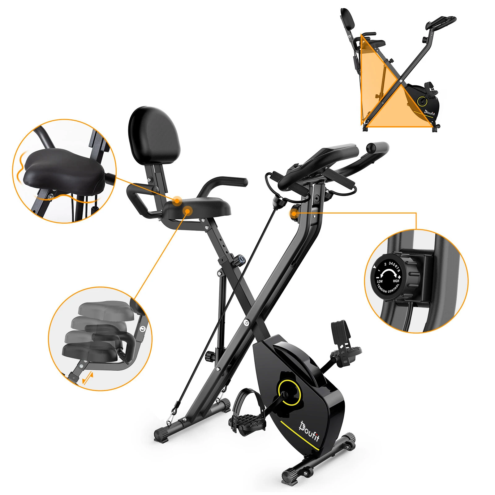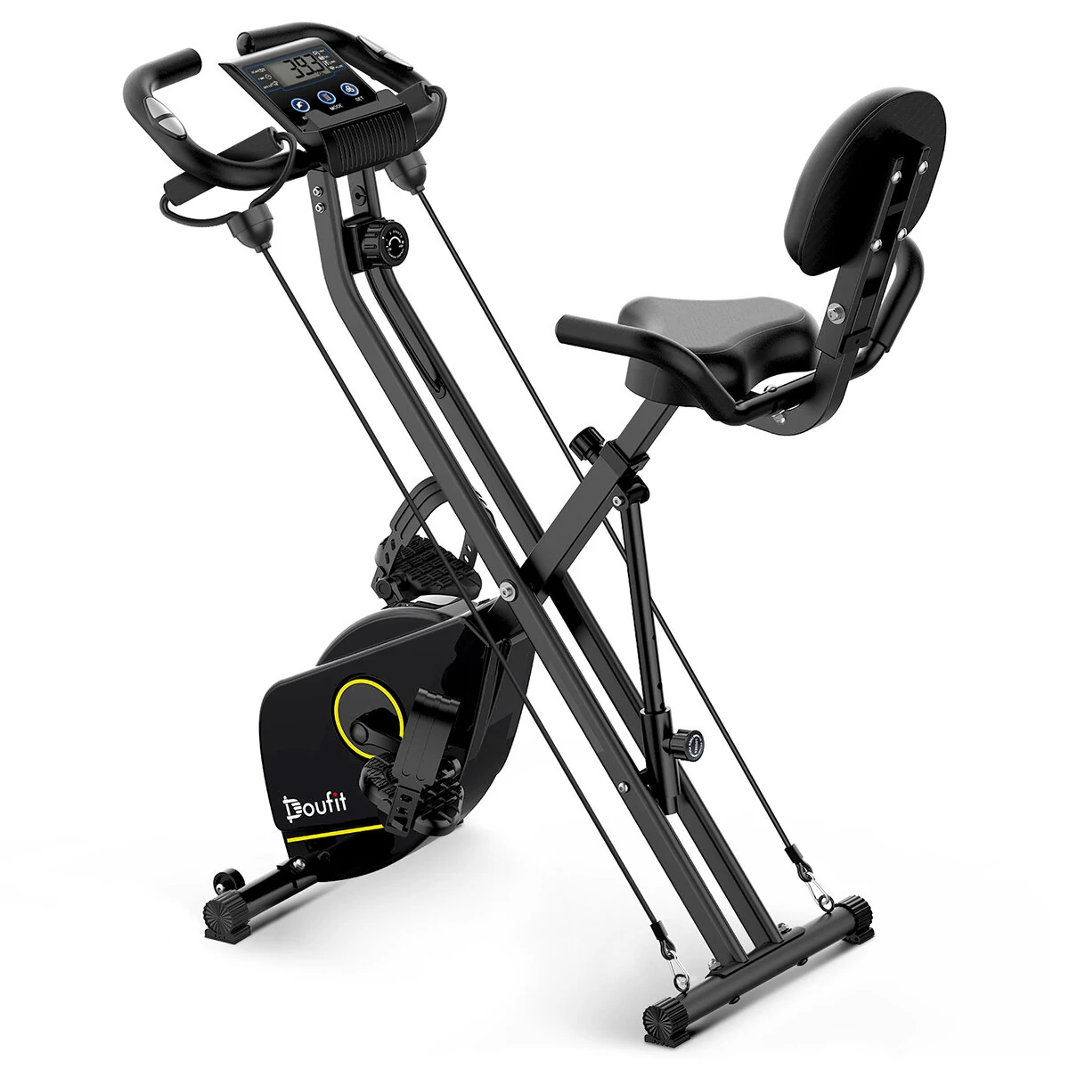 A Doufit EB-11 gép nem a legerősebbek közé sorolható, leginkább egy kezdő berendezés, viszont nagyon nagy előnye, hogy kicsi. A tekerés erőssége 8 fokozatban változtatható egy mágneses ellenállással, a kényelmes üléspozíció eléréséhez pedig 7 fokozatban állítható az ülés magassága. Érdekes módon még háttámlája is van, ami inkább a pihenés során jön jól, tekerésnél nincs sok haszna. Összecsukható a modell, kinyitva 68x40x108 cm a befoglaló mérete, összecsukva viszont csak 45x40x69,3 centiméter. Nyilván így sem kicsi, de tárolni mégis egyszerűbb, mint szinte bármelyik konkurensét, és tettek rá görgőt is, hogy könnyebb legyen a helyváltoztatás vele.
