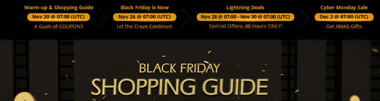 Már elindult a rágyúrás a jövő heti Fekete Péntekre a Gearbestnél is. Ha 11.11 alkalmával is látogattátok rendszeresen az oldalukat, akkor ismerős lesz a szitu, hiszen a játékok nagy részét megőrizték, helyette a dizájnra fordítottak nagyobb figyelmet. Innen már azért sejthető, hogy akiknek bejöttek a november 11-i játékok és nyeremények, azoknak ez ismét jó buli lesz, de a többiek sem maradnak ki, hiszen azért a hasznos kuponoknak és kedvezményeknek mindenki örül.