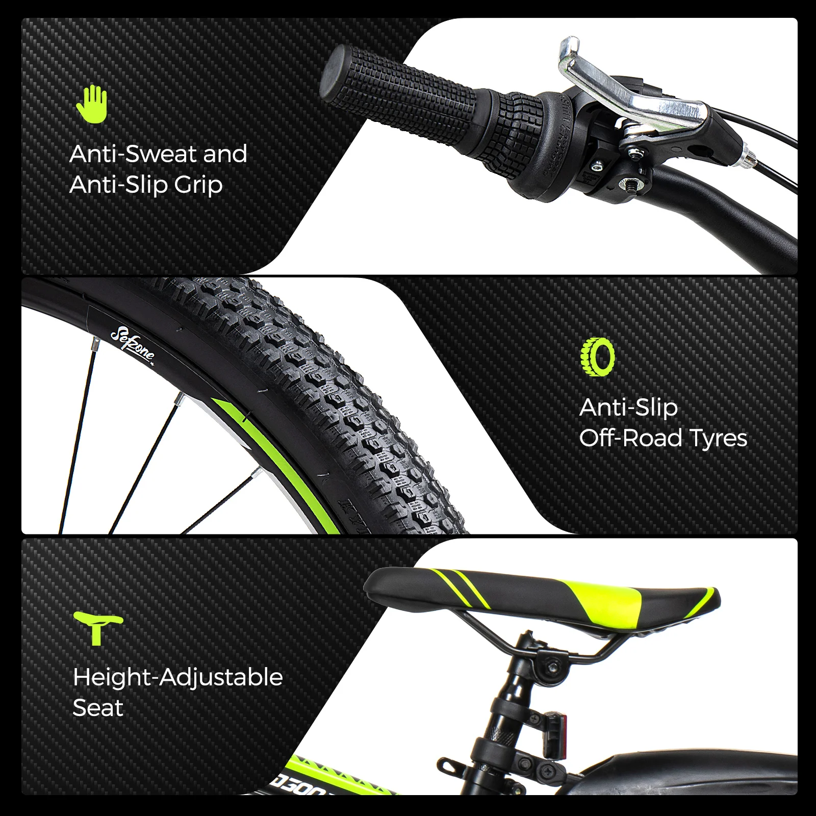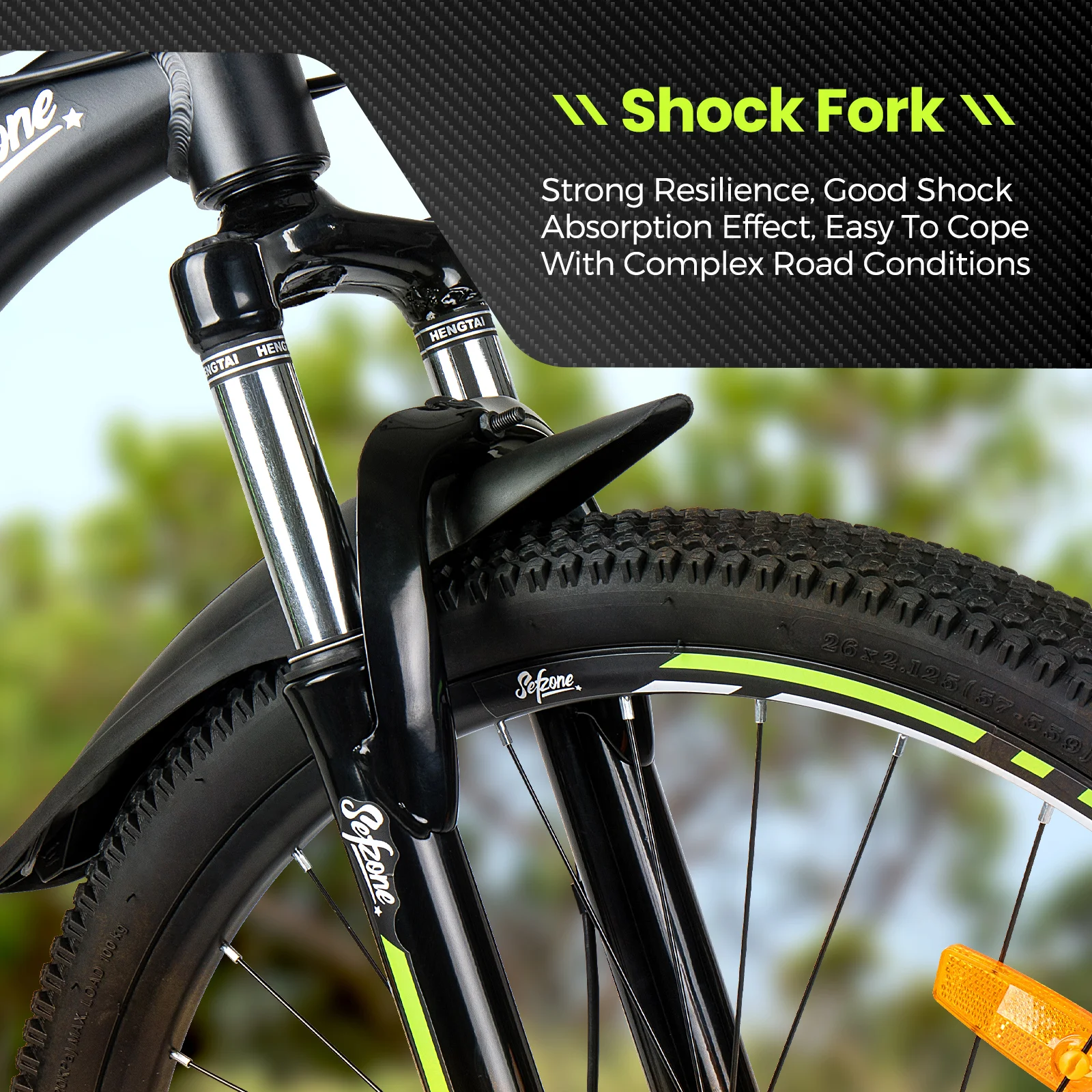 A biciklik között az MTB kategória nagyon felkapott, mert egy ilyen kerékpárral terepen is jól lehet haladni, ám városban sem vészes hajtani. Jellemző a kategóriára a masszív váz, az első lengéscsillapító megléte, és a terepgumi. A kínai Sefzone MD300-as is egy ilyen modell. 26 colos a kereke, ami ebben a kategóriában viszonylag sűrűn előfordul, és elég jó kiállású a gép. A váza alumínium ötvözet, a felnije valószínűleg duplafalú, a gumi pedig terepen és városban is megállja a helyét. Ami pedig izgalmassá teszi, hogy elöl és hátul is tárcsafék található rajta, ami az alsóbb kategóriákban szinte sosem alapfelszereltség. 21 sebességes Shimano marokváltóval felszerelt, az első villa pedig lengéscsillapítós.