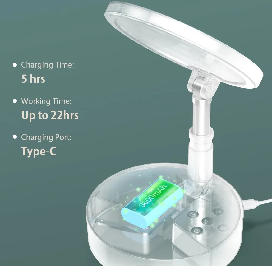 A másik pozitívuma, hogy beépített akkumulátorral látták el, egészen pontosan egy 3600 mAh-s telep található a talpában, melyet Type-C kábellel tölthettek fel és akár 22 órán keresztül is képes világítani. A fényereje 5 lépcsőben állítható, maximális fényereje pedig 400 lumen. Érintőgombok segítségével tudjátok ki- és bekapcsolni, módosítani a színhőmérsékletet és a fényerő intenzitását, sőt, még időzíteni is tudjátok, egészen 45 percig.