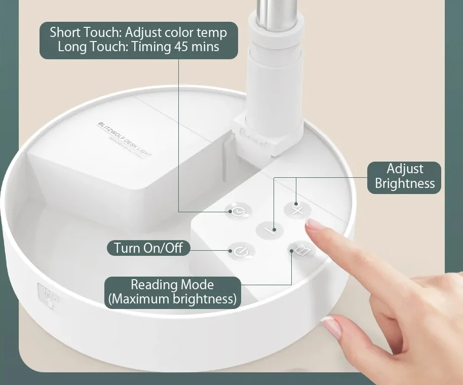 A BlitzWolf BW-DLT1 egy igen ötletes asztali lámpa. Egyik legnagyobb előnye, hogyha épp nincs használatban, akkor néhány mozdulattal összecsukhatjátok, így akár a fiókban is tárolhatjátok, hiszen ilyenkor csak 18x18x5,5 centiméteres. Kinyitva ennél jóval nagyobb, akár 67,5 centiméter magas is lehet. A nyaka 360 fokban forgatható, ráadásul a fejét 180 fokos szögben állíthatjátok, így remekül meg tudja világítani az íróasztalt vagy a könyveteket.