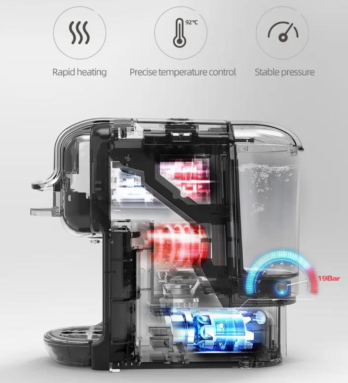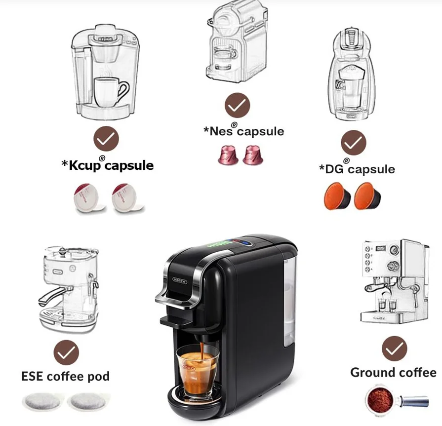 A multifunkciós HiBREW kávégéppel megtehetjük azt, hogy egyik nap őrölt kávét iszunk, másnap pedig kapszulást. Ez azért nagyon jó, mert mindegyiknek megvan a pozitívuma, és valamikor arra vágyunk hogy finomabb legyen, valamikor viszont a gyorsaság a döntő. A HiBREW H2B a márka nagyágyúja, hiszen ötféle módon tud kávét készíteni. Nyilván hagyományos őrölt kávéból készít elsődlegesen, de lehet bele tenni Nespresso, Dolce Gusto és K-cup kompatibilis patronokat, továbbá E.S.E kávépárnát is. A mérete kompakt, 245x110x245 milliméteres, nem foglal nagy helyet, a teljesítménye pedig 1450 watt. A víztartálya 600 ml-es, az egyben kitolt mennyiséget pedig egy hétfokozatú skálán állíthatjuk. További érdekessége, hogy választhatunk, hogy hidegen vagy forrón nyomja át 19 barral a tölteten a vizet.