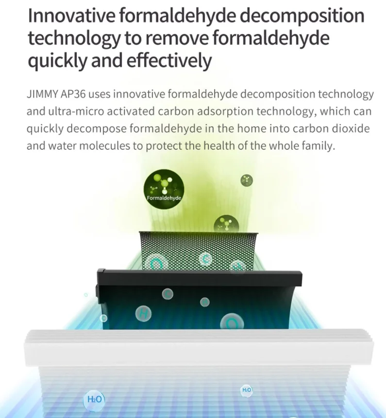 A Jimmy AP36 még a Xiaomi legolcsóbb légtisztítójánál, a 2C-nél is olcsóbb, igaz, ez néhány tulajdonságán meg is látszik. Például az okosfunkciókat hiába keresitek, a Jimmy légtisztítóját nem tudjátok a telefonotokkal vezérelni, viszont a tetején található vezérlőfelülettel így is egy csomó dolgot beállíthattok. Tudjátok például három lépcsőben állítani a teljesítményt, de szerencsére automata üzemmódot is kapott. Méri a levegő minőségét, például ez alapján szabályozza automata módban a teljesítményt, de ti is láthatjátok, hogy milyen a levegő a lakásban, hiszen ezt színekkel jelzi: pirosnál rossz, sárgánál átlagos, kéknél pedig tiszta. A levegőt három rétegű filterrel szűri meg, ami áll egy sűrű szövésű hálóból, egy aktívszenes rétegből, valamint egy HEPA filterből. Egy óra alatt maximum 300 köbméter levegőt tud átforgatni, ami a gyártó szerint egy 25-36 négyzetméteres helyiségre elég teljesítmény, belmagasságtól függően. A beépített fényérzékelőnek köszönhetően éjszakára magától lekapcsolja a világítást, hogy ne zavarjon titeket alvás közben.