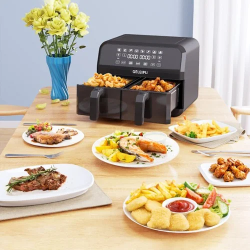 Nincs nagy kereslet a duplakosaras air fryerekre, mert aki az első ilyen készülékét vásárolja, ő sok esetben szimplában gondolkodik. Pedig családoknak mindenképp a dupla lesz a jobb választás, mert több kaja fér bele, a két külön fakkban pedig más étel is sülhet egyszerre. A Geleipu gépe egy jó ár/érték arányú készülék, ami még soha nem volt ennyire olcsó, most kuponnal már 38 400 Ft-ért meg lehet rendelni európai raktárból