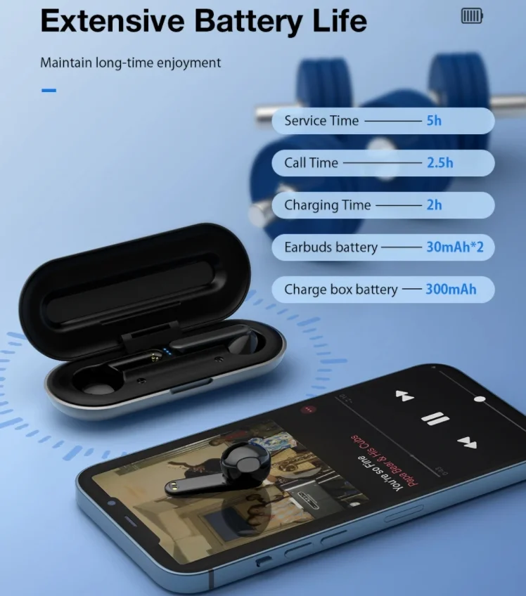 30 mAh-s beépített akkumulátor van a fülesekben, a töltőbölcsőben pedig tízszer ekkora aksi található. Egy töltéssel nagyjából ötórányi zenehallgatás jön össze vele, újratölteni Type-C porttal tudjuk.