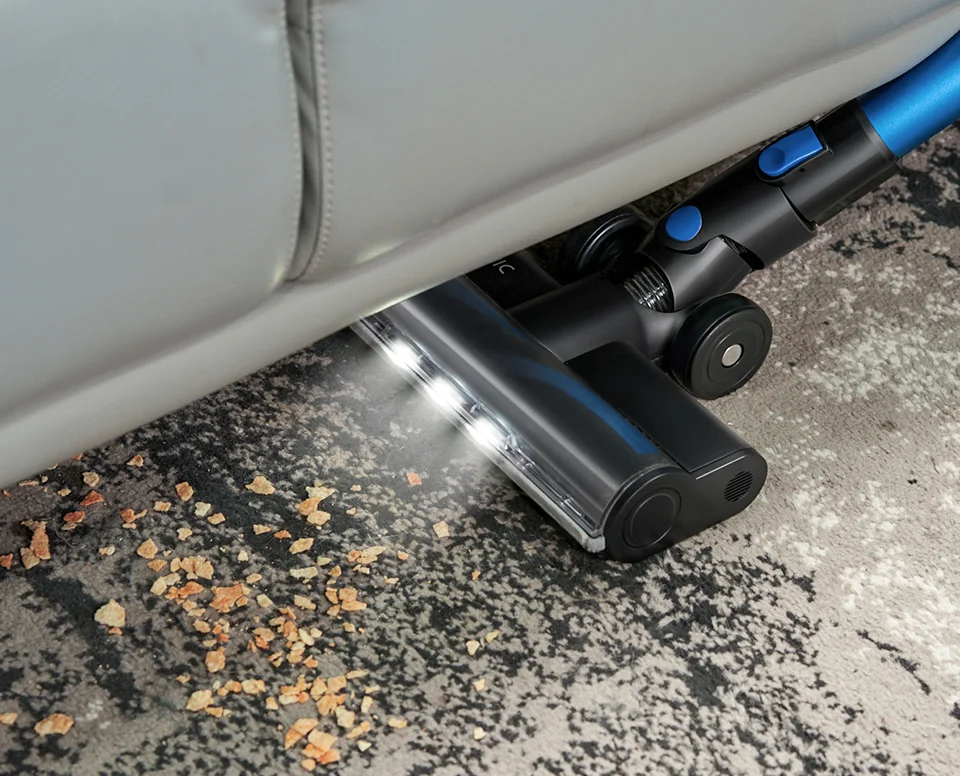 A porszívó motoros forgófejjel felszerelt, aminek LED-es segédfénye is van. Mellette kapunk a dobozban egy hosszúkás szűkítőt és egy kefés fejet is.