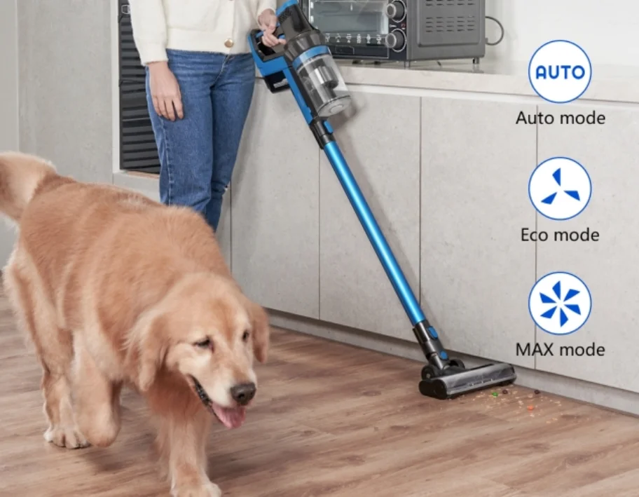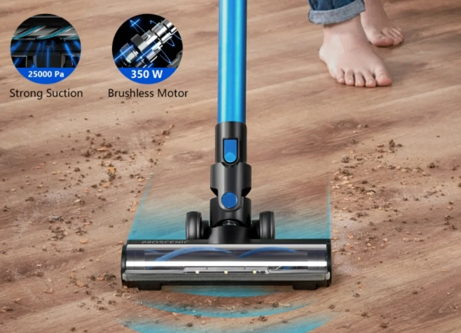 Egy hagyományos, akkumulátoros rúdporszívó a Proscenic I10, de a konkurenciát megszégyenítő árazás mellett kínál egészen sokat. A szívóereje 25 000 Pa, mely azért nem rossz, és lehet állítani is, mert van aksikímélő ECO módja, van egy „mindent bele” MAX mód és automata mód, amikor pedig saját maga állítja a szívóerőt. A VBoost technológia ismeri fel a különböző padlótípusokat és a szőnyegeknél például megemeli a szívóteljesítményt. A kezelése pofonegyszerű, érintős gombja van, a ravaszt húzva pedig bekapcsol.