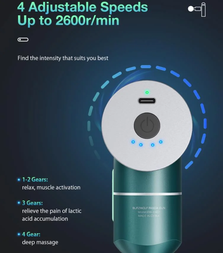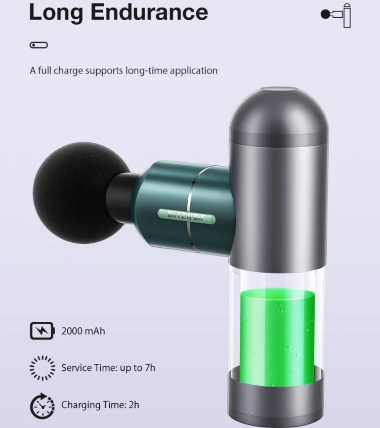 A BlitzWolf BW-FAS1 névre keresztelt masszázspisztolyt idén már mi magunk is alaposan leteszteltük. Egy nagyon jó minőségű termékről van szó, kiváló az anyaghasználata, a kezelése gyerekjáték, és több olcsó készülékkel szemben nem idegesítően hangos. Egy 2000 mAh-s akkumulátor található benne, melyet Type-C porton keresztül tudunk feltölteni, egy töltéssel pedig körülbelül 7 órán át tud üzemelni. A masszázs intenzitása négy lépcsőben állítható, így mindenki igényei szerint tudja használni a kütyüt. A pisztoly feje cserélhető, 4 darabot mellékelnek is a csomagban, amelyek a test különböző részeire vannak tervezve. A gömb alakút a nagyobb izomcsoportokra szánták, van egy lapos fej a finom masszázsra, egy U alakú a nyakra és hátra, illetve egy hegyesebb rúd alakú, amivel kisebb területeket, például a talpunkat, könyökünket és térdünket tudjuk alaposan megmasszírozni.