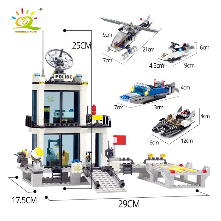 A HUIQIBAO Toys építőjátékát vásárolhatjátok meg Aliról röhejes áron, amivel egy városi rendőrörs szerelhető össze börtönnel, helikopterrel és hajóval együtt. Hat év feletti gyerekeknek ajánlják, három éves kor alatt nem használható a túl apró kockák miatt.