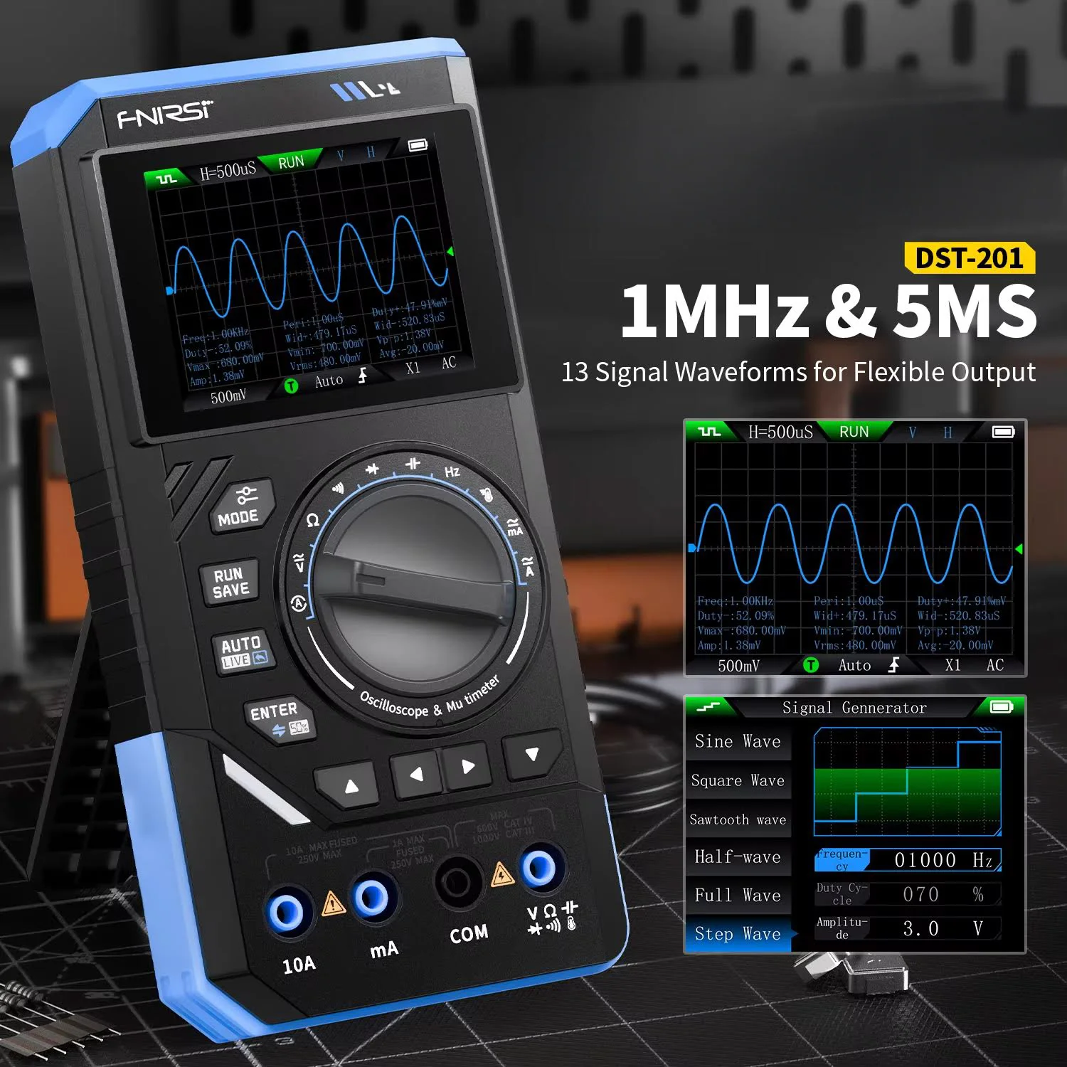 Ha nem vagy hardcore elektronikai megszállott, a FNIRSI DST-201 bőven megteszi: 5 MSa/s mintavételezés, 1 MHz sávszélesség, és három tizedesig kiterjedő számolás. Azonban ha egy kicsit többre vágysz, akkor választhatod a DST-210-es verziót is, ami már 10 MHz sávszélességgel és 48MSa/s mintavételezéssel, valamint 0-50 KHz-ig terjedő frekvencián működik.
