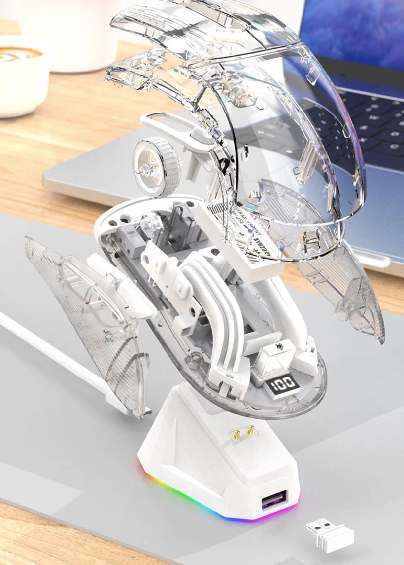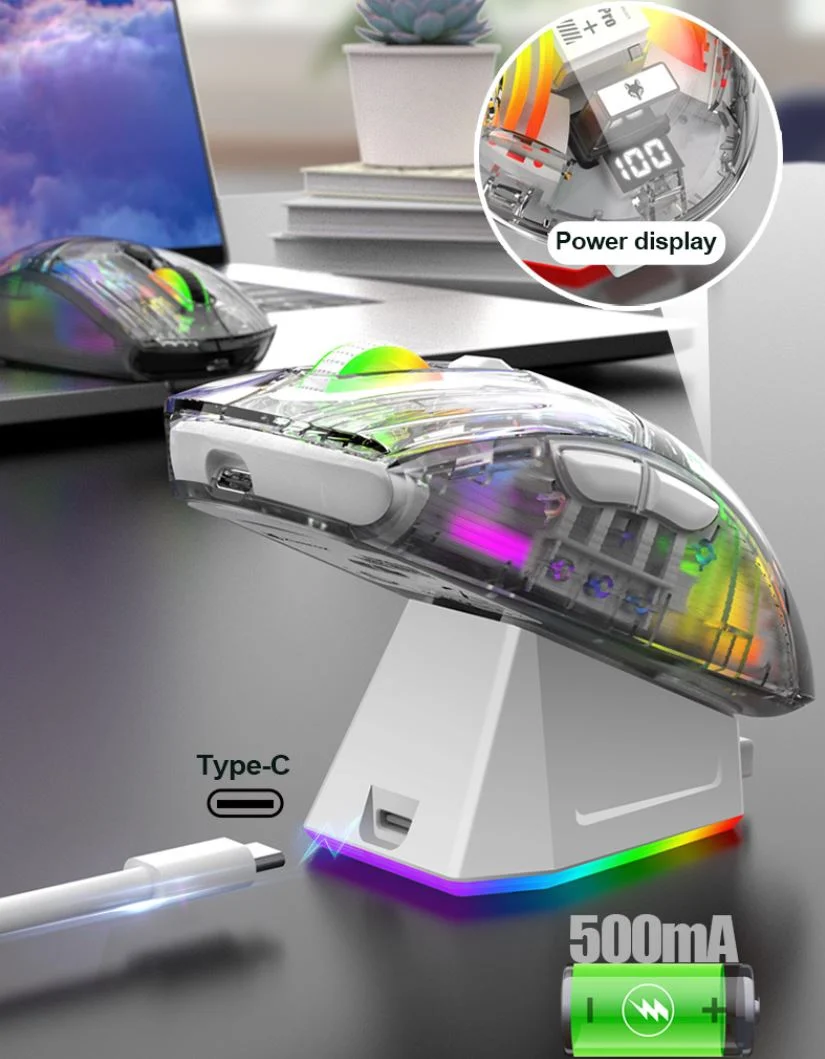 Az egér mérete (126x62x38,5 mm) jól illeszkedik a kézbe, így akár órákig is kényelmesen használhatod anélkül, hogy rágörcsölne a kezed az egérre. Gombjai teljesen némák, amelyet sok felhasználó kedvel. Kijelzővel is felszerelték, amin ellenőrizhető a töltöttségi szint. Az 500 mA akkumulátorkapacitás hosszú üzemidőt biztosít, így nem kell állandóan töltésre gondolnod és amikor végül mégis eljön az ideje, a töltőbázis segítségével könnyedén feltöltheted, így az egér mindig készen áll a használatra. Ha pedig azon „tárolod”, akkor soha nem kell manuálisan töltened, amit egyébként Type-C porton keresztül megtehetsz.