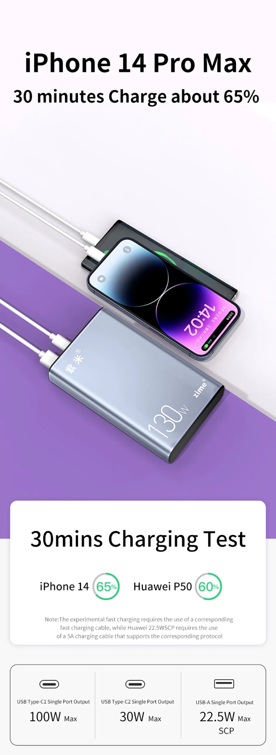 130 W-os PD töltésre képes Zime power bankot találtunk