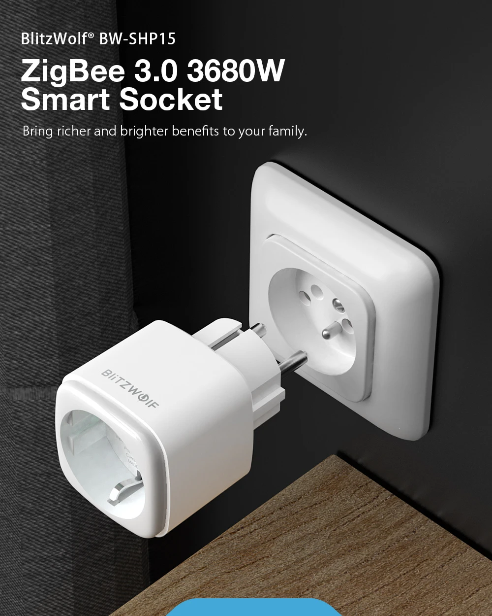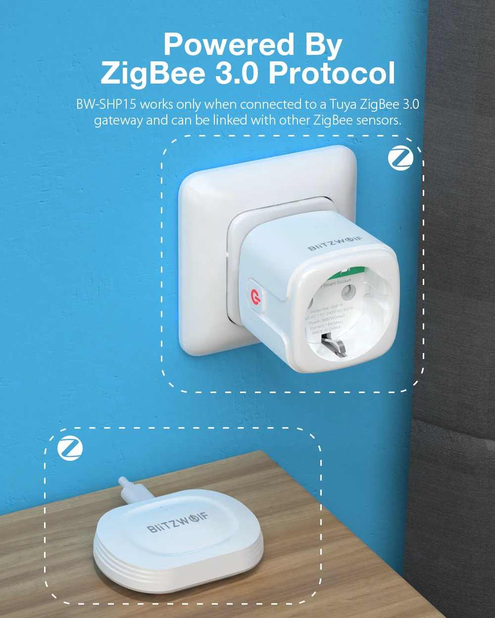 Kompakt méreteinek köszönhetően a BlitzWolf BW-SHP15 nem foglal sok helyet (mindössze 49x49x82 mm), így szinte észrevétlenül beilleszthető bármelyik otthoni konnektorba. Fontos azonban megjegyezni, hogy a BlitzWolf alkalmazás már nem támogatott, ezért a használathoz töltsd le a Tuya vagy Smart Life applikációt. Továbbá szükséged lesz egy Zigbee 3.0 Gateway eszközre, amelyet könnyedén beszerezhetsz akár Aliexpressről is. A BlitzWolf BW-SHP15 kompatibilis minden Tuya Zigbee 3.0 Gateway hubbal.