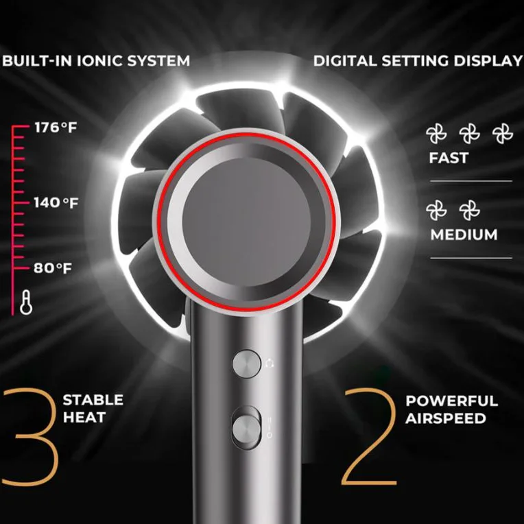 Az ionizátor mellett 2 sebesség- és 3 hőmérséklet-fokozat valamint két fej jár hozzá