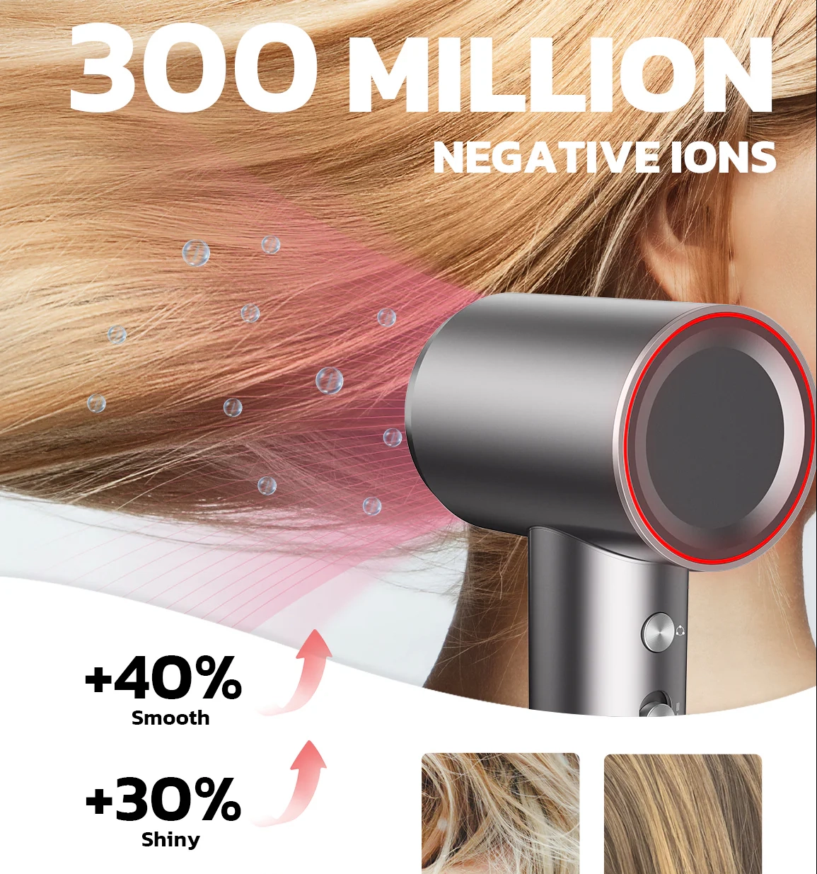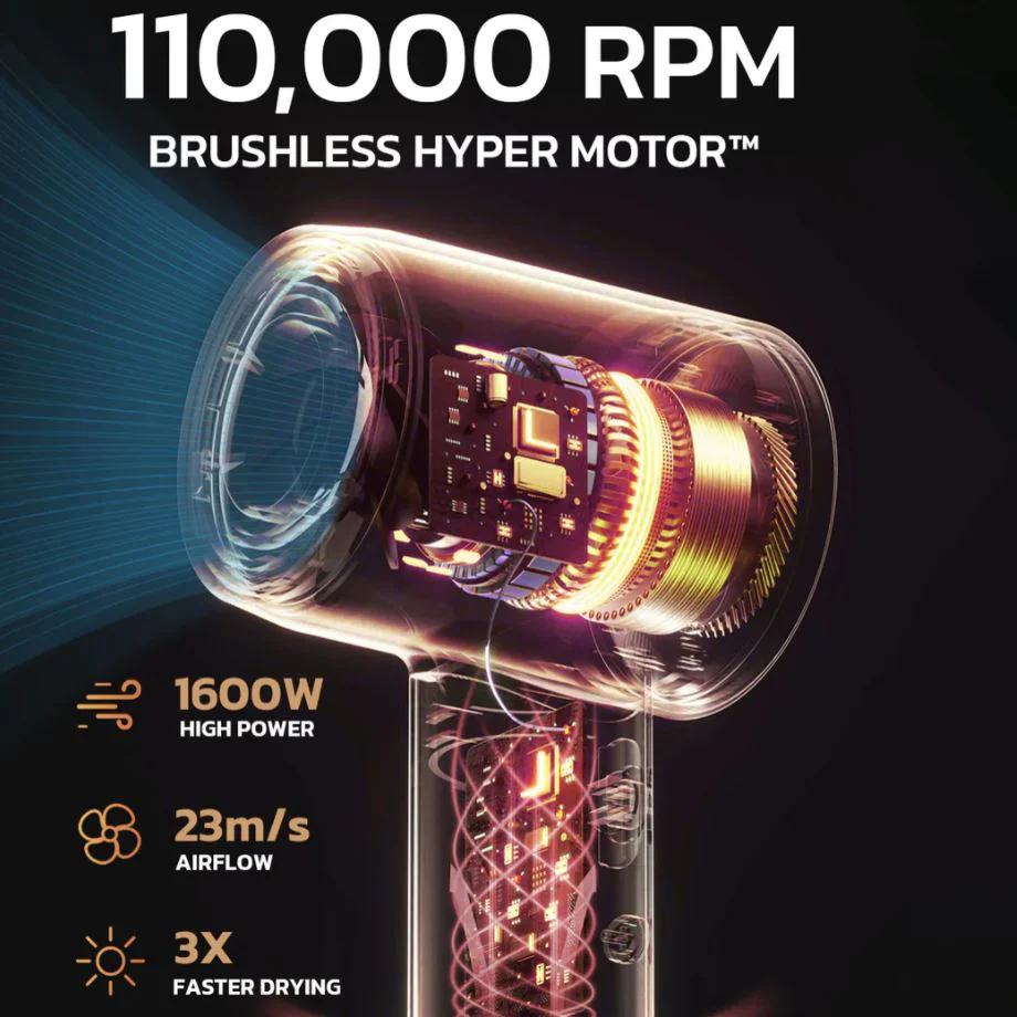 Emellett a negatív ionok elősegítik a vízmolekulák felbomlását, így gyorsabban meg tudjátok szárítani a hosszabb és dúsabb hajkoronákat is. 1600 W-os, kefe nélküli, 110 000 fordulat/perc sebességű motort és mindösszesen csak 59 dB hangerőt kapott, ami nem számít rossznak és túl hangosnak sem a hajszárítók között. A gyártó ígérete szerint az átlagos hosszúságú és dússágú haj körülbelül 5 perc alatt teljesen megszárítható.