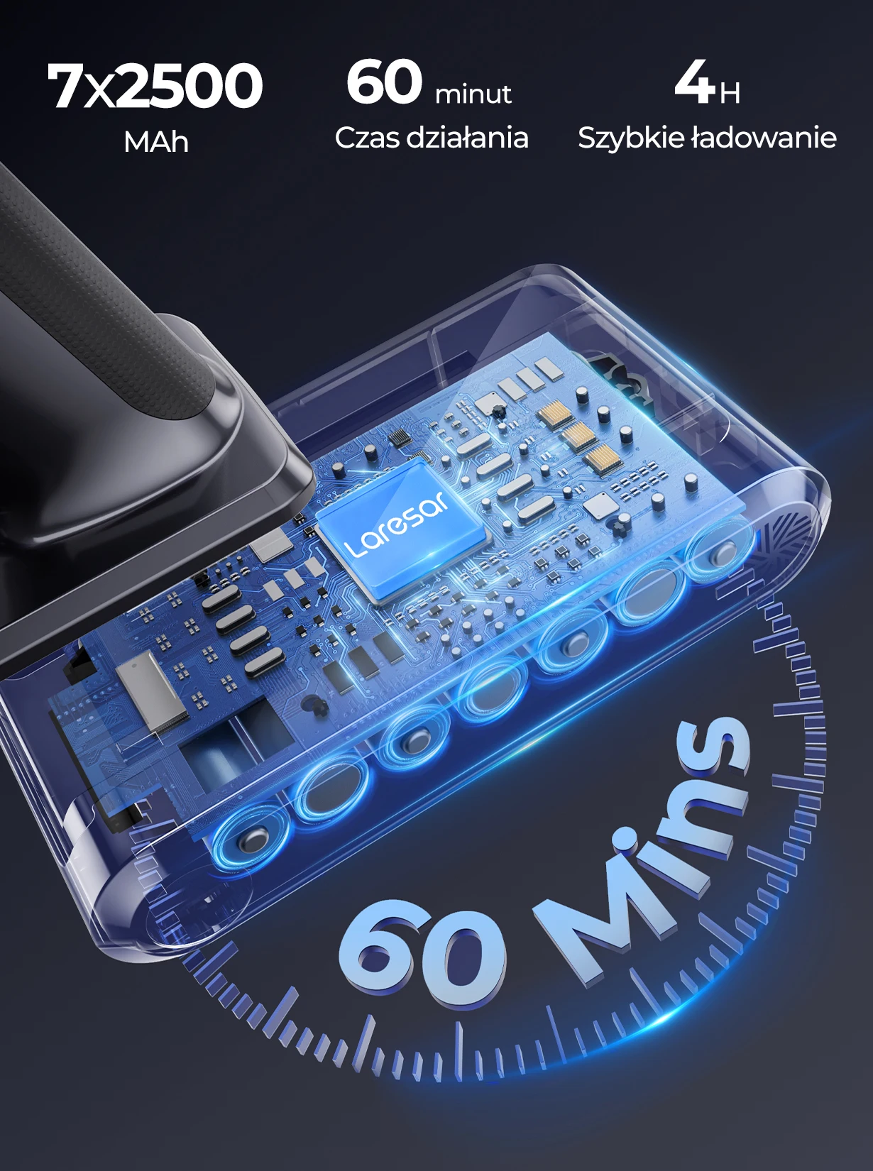 A Laresar Elite 8 vezeték nélküli porszívó igazi újdonság a háztartási gépek piacán. Ha eleged van abból, hogy a hagyományos porszívók kábelei mindenhol akadályoznak, és egy igazán erős, mégis praktikus megoldást keresel, akkor ez a porszívó számodra lehet az ideális választás. Könnyű, vezeték nélküli kialakításának és kimagasló szívóteljesítményének köszönhetően bármilyen felületen hatékonyan használható – legyen szó szőnyegről, kemény padlóról vagy akár autók belső tisztításáról.