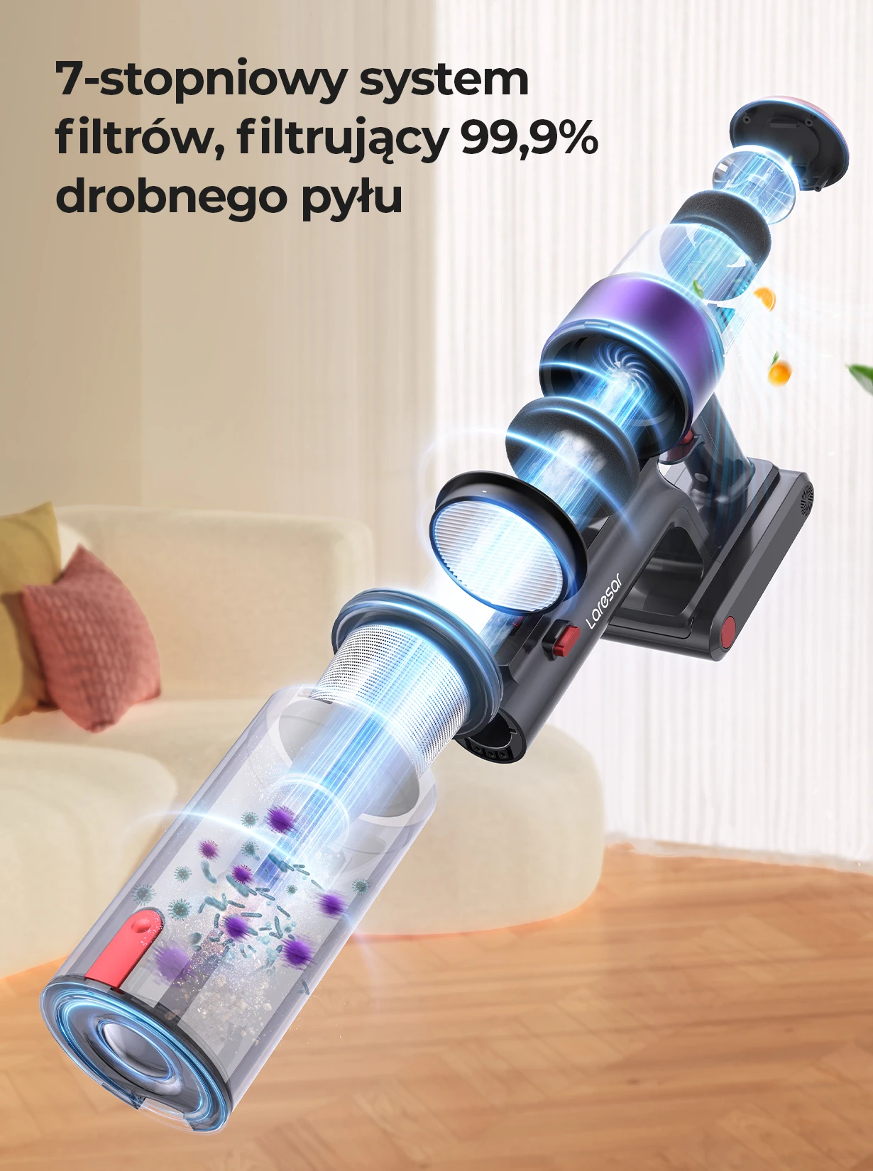 7 rétegű szűrőrendszere gondoskodik róla, hogy a felgyülemlett por és szennyeződések valóban a tartályban maradjanak, miközben a kifújt levegő tisztán kerül vissza a környezetbe. Az extra hatékonyság érdekében egy HEPA-szűrő réteg is található benne, amely még a legapróbb porszemcséket is kiszűri, így allergiások számára különösen kedvező választás. A nagy kapacitású porgyűjtő tartály kényelmesen üríthető, így a hosszabb takarítások során sem kell megszakítanod a munkát. Tartozékainak köszönhetően különböző felületekhez és helyzetekhez is alkalmazkodik. A speciális, kemény és puha sörtékkel ellátott hengerkefével hatékonyan tisztíthatsz mindenféle padlót anélkül, hogy váltanod kellene a fejeket. A teleszkópos alumínium cső, a résekhez való kefe és a körkefés fej minden igényt kielégít, így akár szűk helyeken, magasabb pontokon, lépcsőkön vagy akár az autó belső terében is könnyedén használható.