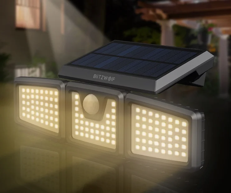 Ez a kültéri lámpa abban különbözik a legtöbb hasonló társától, hogy melegfényű. Az eszközben 128 darab SMD2835-ös LED van, és 3000 Kelvines színhőmérséklettel rendelkezik, a fényereje pedig 400 lumen. Három LED panelből áll, melyek külön mozgathatók, és tetszőlegesen irányíthatjuk a fényét. Fény- és mozgásérzékelővel is rendelkezik, tehát amikor világos van, akkor nem fog világítani, csak sötétben és abban az esetben, ha mozgás van. Ezt 8 méteren belül érzékeli, és fél percig marad bekapcsolva. A tetején napelem található, ami 6-8 napsütötte óra után tölti fel az 1800 mAh kapacitású akkumulátorát, amiről üzemel. IP64-es vízállósággal rendelkezik, így ellenáll az időjárás viszontagságainak.