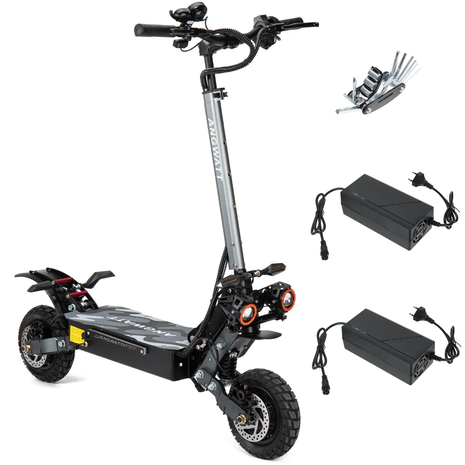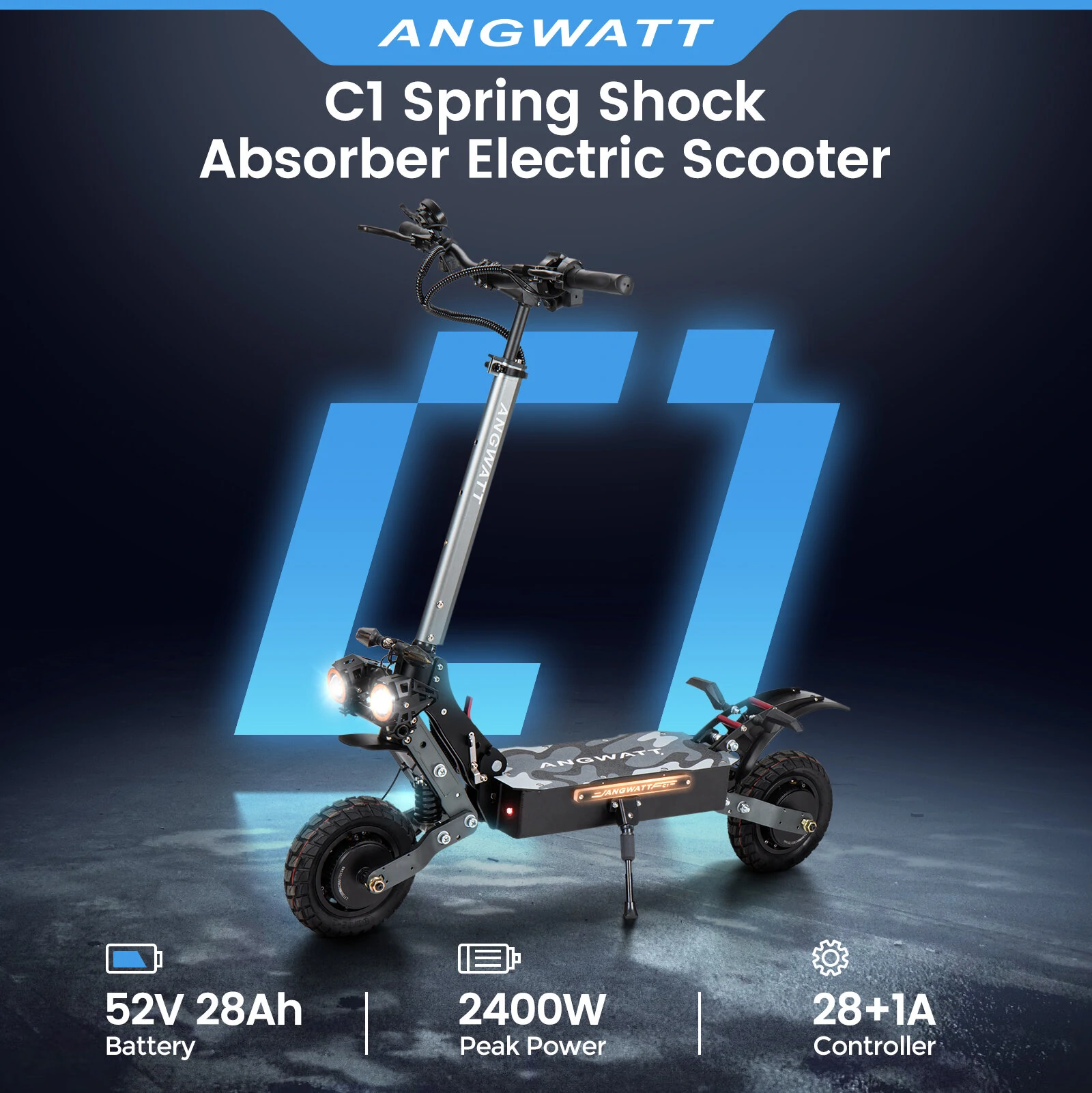 Az ANGWATT C1-ről előbb gondolnám, hogy a Transformers filmekből lépett ki és hamarosan robottá változik, mintsem hogy egy elektromos roller. Brutál erős, dupla motorral süvíthetsz vele, szóval a védőfelszerelés szinte kötelező mellé. Masszív kialakítása, gyorsasága és stabilitása miatt az egyik legjobb választás. A nagy hatótávolsága és a fejlett technológiai megoldások kombinációja lehetővé teszi, hogy élmény legyen minden megtett kilométer. A 323 200 forint pedig nagyon megérős most érte.