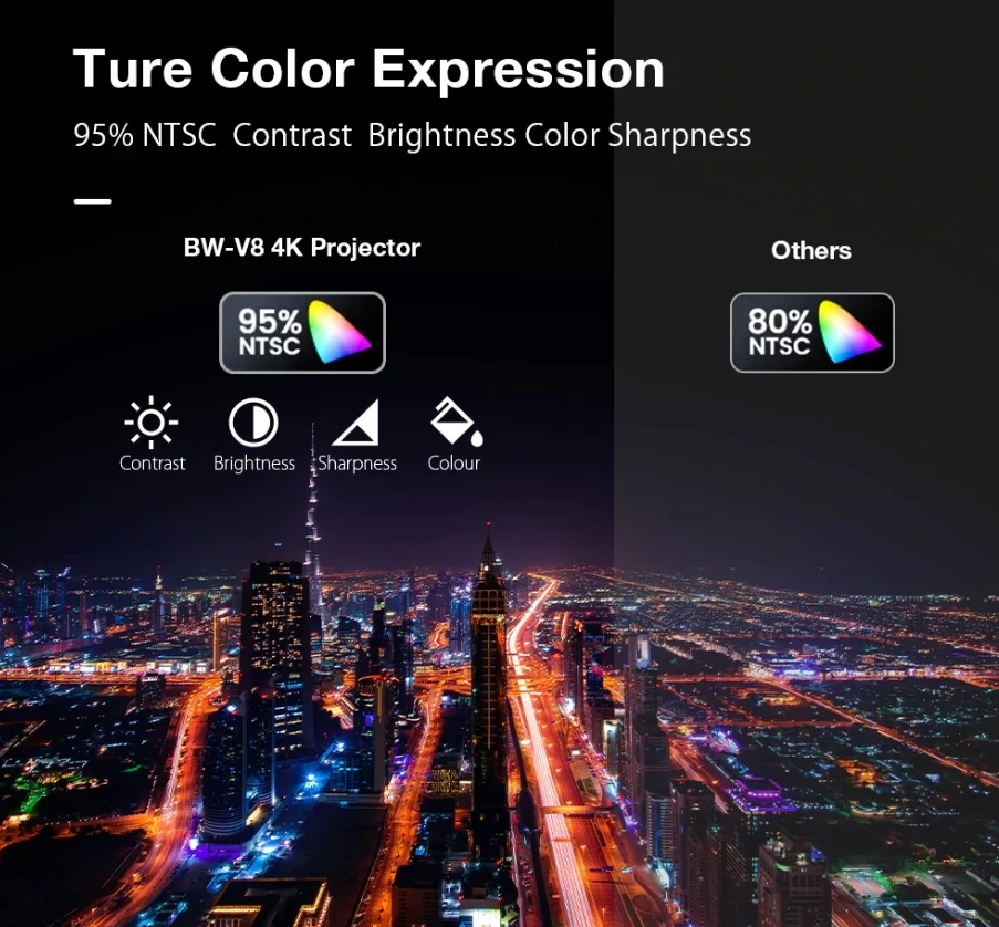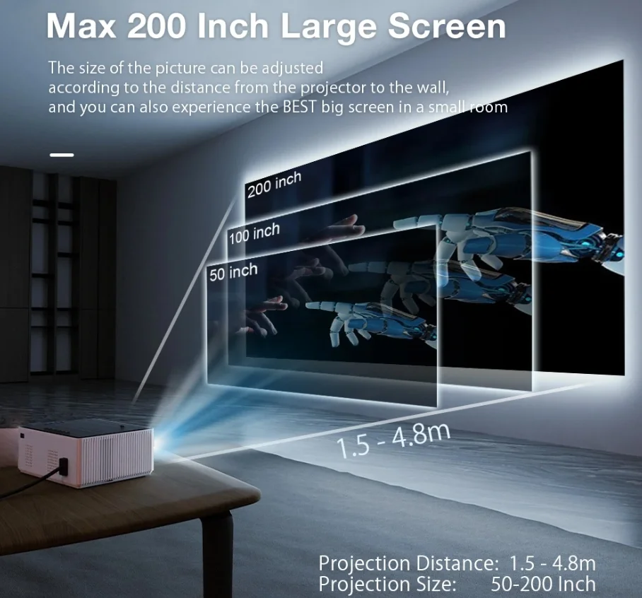 A marketinganyagban a vetített kép 50-200 inch közöttinek van megadva, ami átszámolva 127-508 centiméter, de ennél inkább kisebbel kalkulálj, úgy lesz az igazi. A projektorban csak egy, 5 wattos hangszóró található, viszont amikor leteszteltük a BW-V8-at, akkor kellemes csalódás volt a meglepően jó hangja, pedig előtte azt gondoltuk, hogy nem fog szépen szólni.