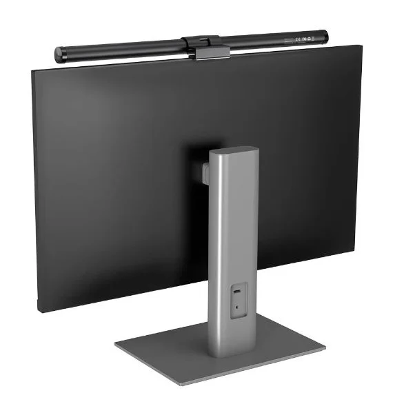 A monitorlámpa nem foglal helyet az asztalon, frontálisan világítja be a területet, így nem vet árnyékot a kezetek. Jól láthatjátok az asztalon a klaviatúrát, a jegyzeteket és minden mást, viszont nem tükröződik a fénye a monitoron. Az eszköz műanyagból és alumíniumból készült, és a hengeres kialakítás egész jól néz ki. A kijelző tetejére kell felragasztani egy mágneses platformot, és ehhez rögzül a lámpa.