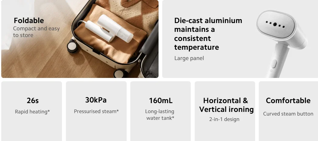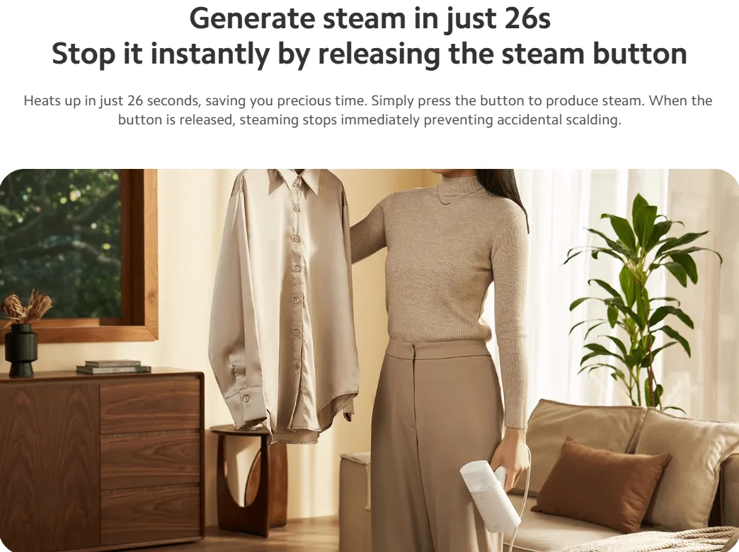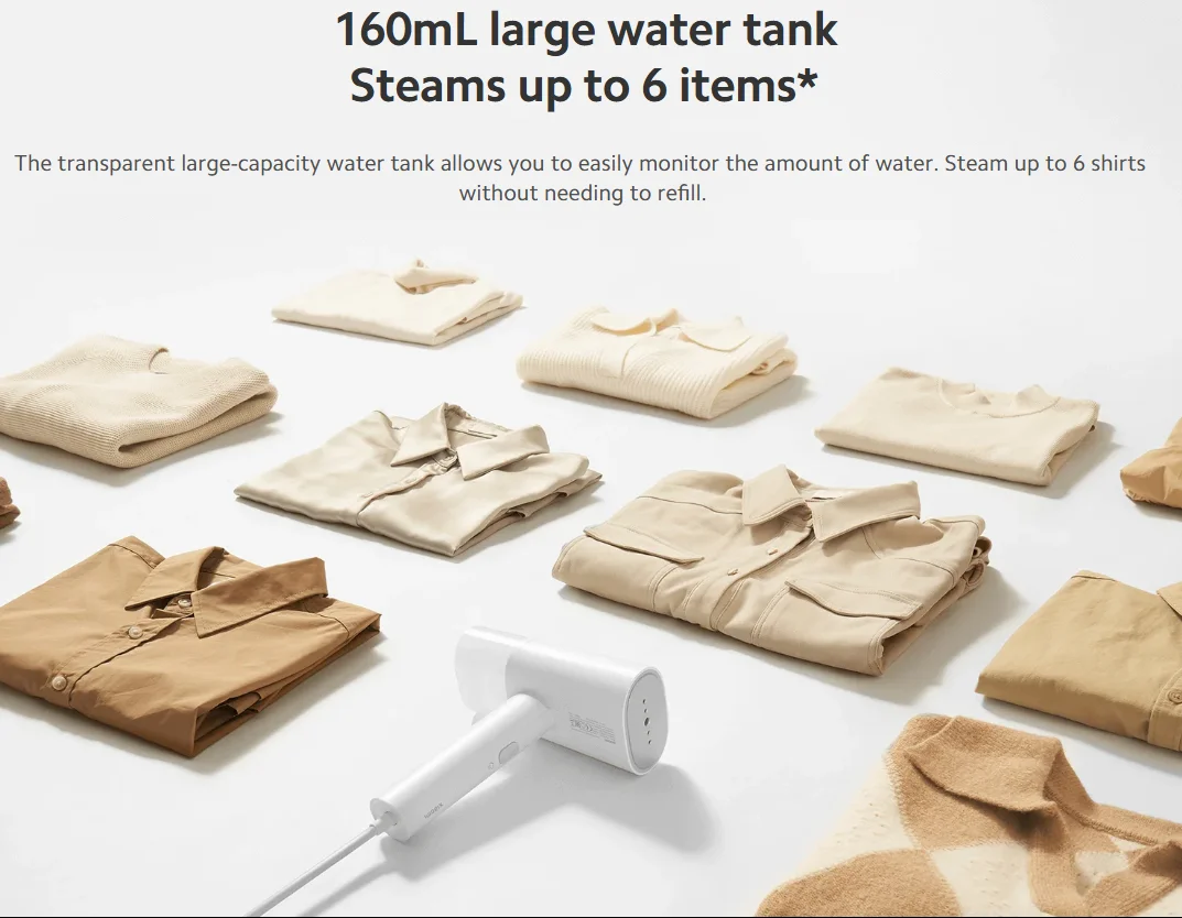 A Xiaomi kézi ruhagőzölője kevesebb, mint fél perc alatt üzemkész, így bármikor gyorsan bevetheted, ha éppen egy fontos találkozóra vagy randira készülsz. A 160 ml-es, kivehető víztartályával egy feltöltéssel akár hat inget is könnyedén kisimíthatsz, így nem kell állandóan újratölteni.