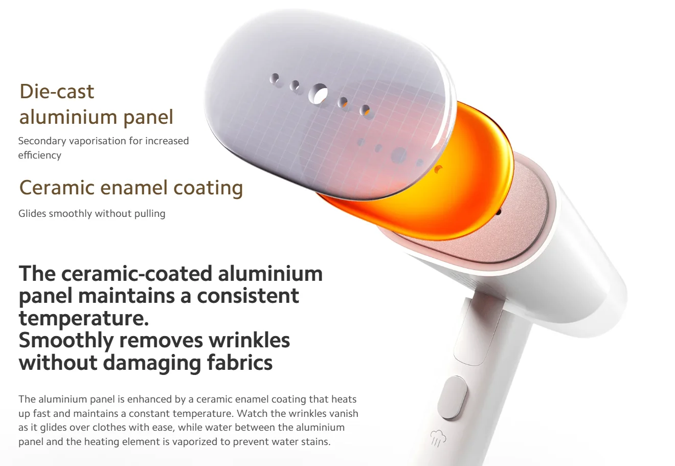 1300 W-os teljesítményével és szupererős (30 kPa) gőzkibocsátásával hatékonyan veszi fel a harcot a legmakacsabb gyűrődésekkel is.