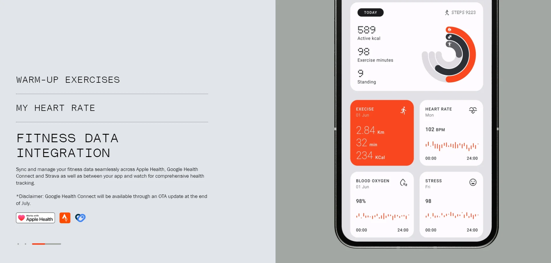 Az eszköz menüjében 120 sportmód közül választhatsz, amiket beállítás nélkül is képes az óra felismerni. A testmozgásnak az izzadság és az eső sem szabhat gátat, ugyanis elődjéhez hasonlóan az új típus is IP68 szabvány szerint vízálló. Szenzorok tekintetében felszerelték gyorsulásmérővel, GPS-szel, pulzus- és véroxigénszint mérővel, lépés- és kalóriaszámlálóval, alvásfigyelővel, illetve ellátták a szokásos értesítési, ébresztési funkciókkal, menstruációs ciklus követővel és időjárás előrejelzéssel. CMF Watch Pro 2 testreszabható widgetekkel rendelkezik, de az applikációjában sajátokat is létrehozhatsz tetszés szerint, illetve több mint 100 óralap közül választhatod ki a hangulatodhoz legmegfelelőbbet. A telefonodhoz Bluetooth 5.3-on keresztül csatlakozik, így biztosan nem maradsz le egy üzenetről vagy értesítésről sem.