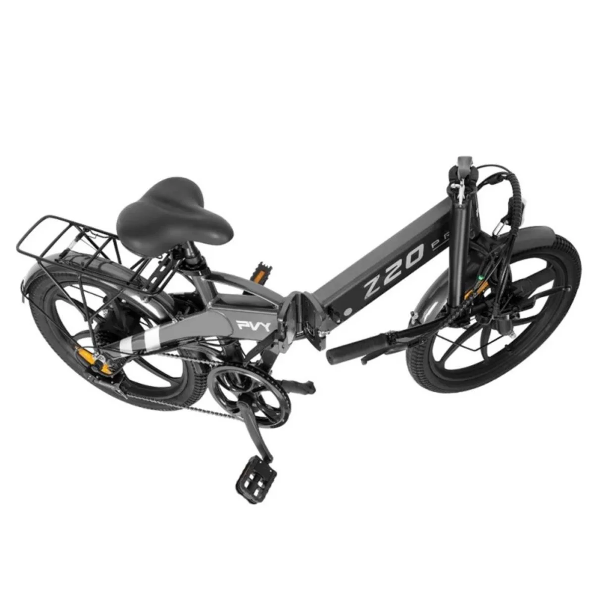 A PVY Z20 Pro több helyen is összehajtható, a váz közepénél és a kormánycsőnél, sőt még a pedálok is a vázra fordíthatók, mindez nagyjából 8 másodpercet vesz igénybe. A teljesítményt 5 lépcsőben állíthatjátok, van séta mód, ami 5-6 km/h-t jelent, illetve 15/20/25 km/h-ig rásegítés, míg az utolsó a nullás mód, amikor hagyományos bringaként használhatjátok. A tekerésben segít egy 6 sebességes Shimano váltó.