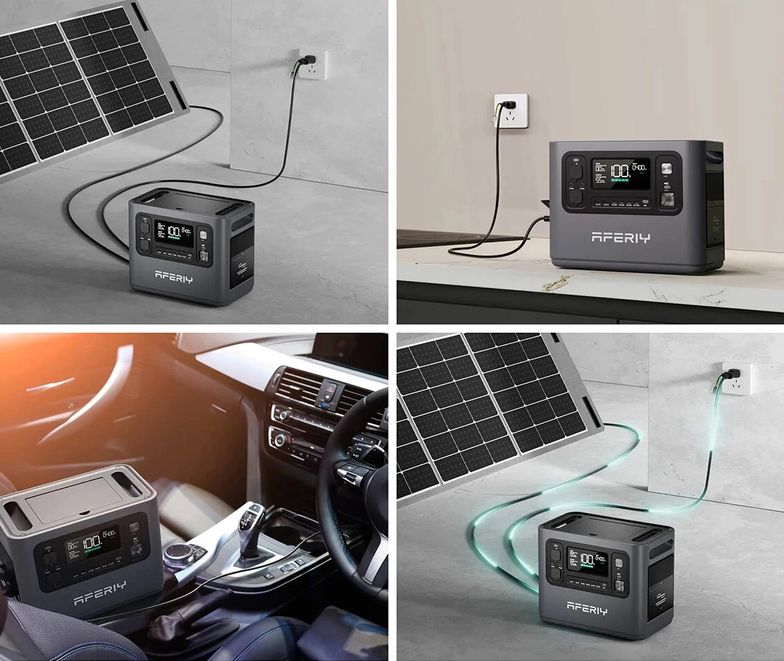 Bemeneti oldalon is sokoldalúan használható, hiszen 500 W-os bemenet támogatja a napelemeket és 700 W-os bemenet a hagyományos hálózati áramforrást is. Az Aferiy P110-D power station beépített LiFePO4 akkumulátorokkal rendelkezik, amelyek 10 éves élettartamot és akár 3500 töltési ciklust ígérnek. Töltési ideje a használt csatlakozón múlik, azonban minden esetben nagyon gyors: