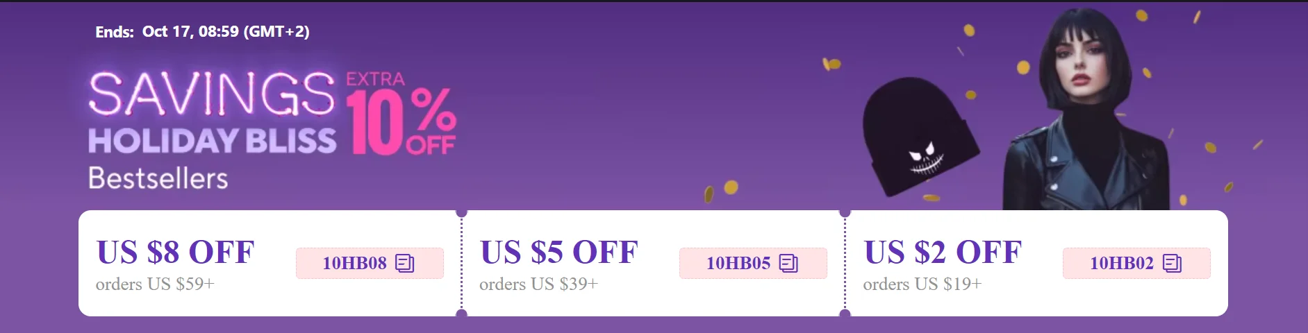 Az akció már fut, viszont október 17-én véget fog érni, így érdemes figyelned, hogy le ne maradj az extra ajánlatokról! Irány az Aliexpress Savings Holiday Bliss oldalára!