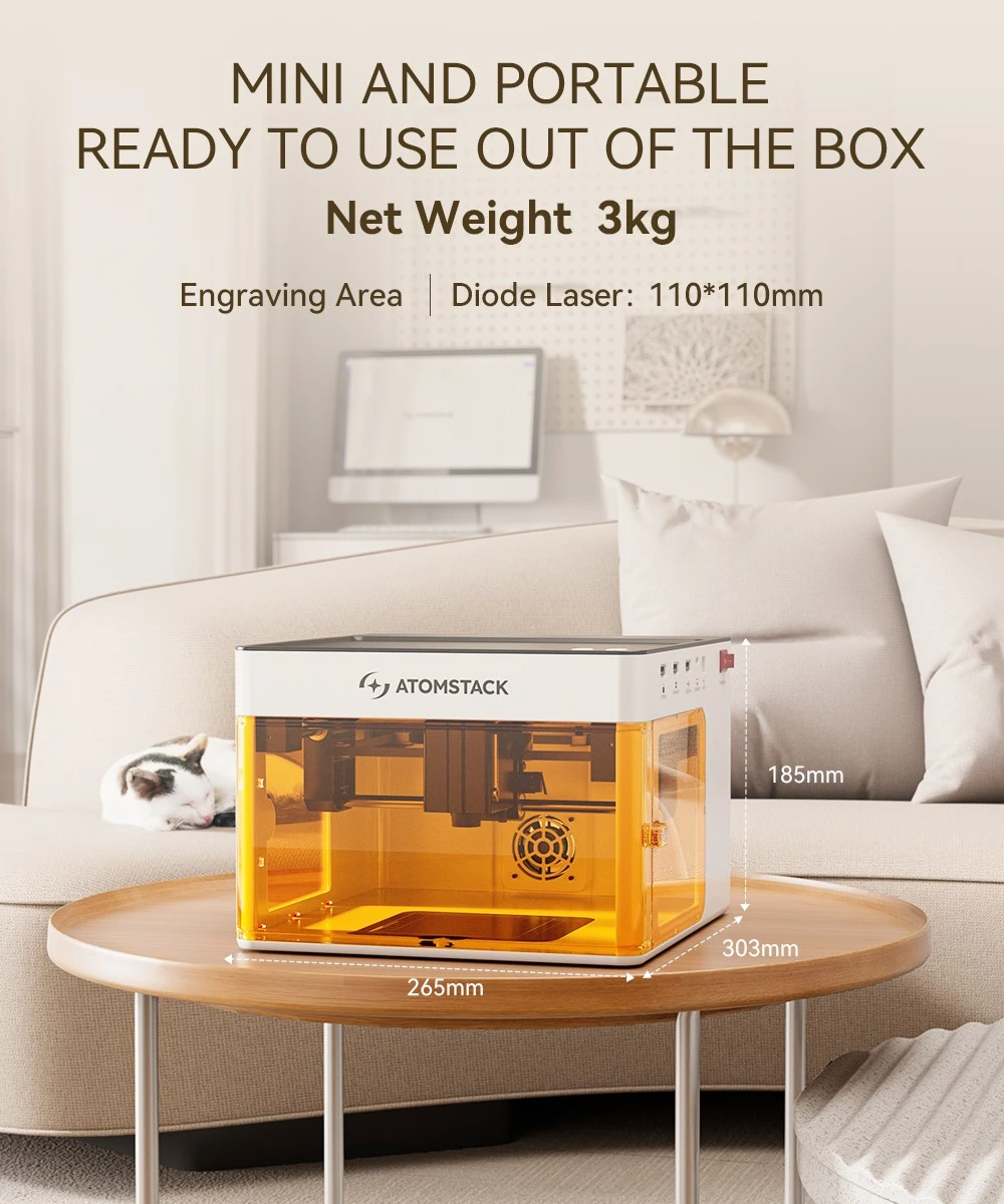 Ha valaha is szerettél volna egy kompakt, de nagy teljesítményű lézergravírozót, amellyel szinte bármilyen anyagra alkothatsz, akkor az AtomStack P1 lesz a válasz a kérdésedre. Ez a kicsi, mindössze 3 kg-os gép nemcsak hogy hordozható és könnyen használható, de a teljesítményével is lenyűgöz. A beépített 5 W-os diódalézernek köszönhetően precízen gravírozhatsz fát, bőrt, papírt és számos más anyagot, így kiélheted a kreativitásodat.