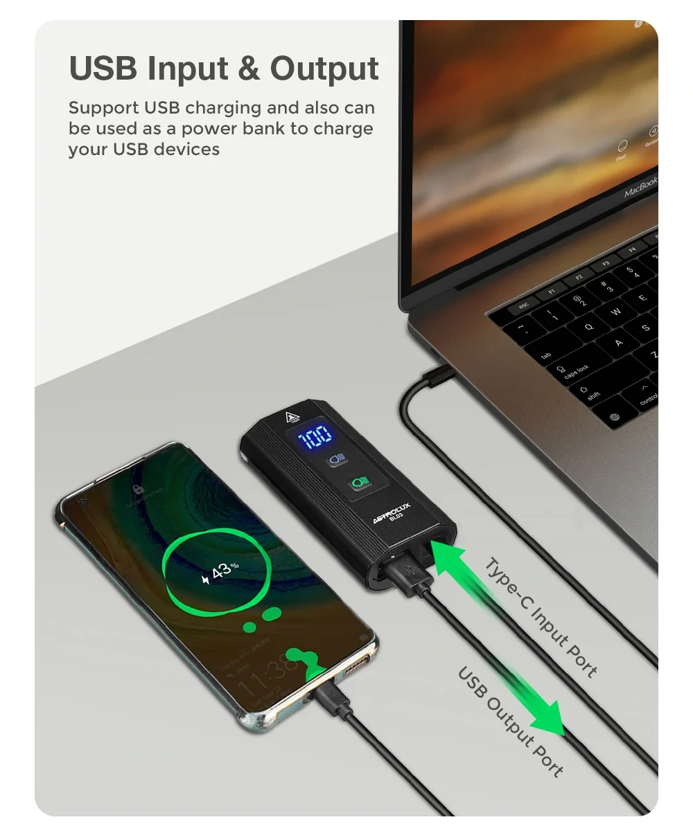 Először is a lámpa Type-C portról tölthető, nem kell csere-berélni az akkukat és az elemeket. Másodszor 1200 lumen a fényereje, vagyis elvilágít 300 méterre. Valljuk be, ez igazából egy bringára felesleges, viszont a 2 darab XTE és az 1 darab XPG LED akkor is tudja ezt a fényerőt, és ha visszavesztek a teljesítményből, akkor szépen nő az üzemidő, akár 12 óráig. Összesen 5 lépcsőben állítható az ereje, van villogó és SOS mód is, ezeket egy LED-es indikátoron követhetitek nyomon. A LED-ek ráadásul más szögben is világítanak, így a közvetlen előttetek lévő területet és a távolabbi útszakaszt is meg tudjátok világítani, az autótokon is használt tompított/reflektor analógia szerint. A lámpa power bankként is használható – van rajta USB-A kimenet –, a kapacitása 6600 mAh, szóval egy telót tele tud nyomni, ha egy vészáramforrásra van szükségetek.