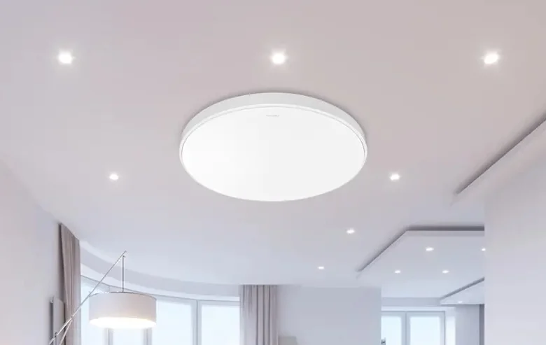 Ez a közepes mennyezeti lámpa, aminek 64,8 centiméter az átmérője és 8 centi vastag. A benne lévő 180 darab LED teljesítménye 65 watt, a fényerejük pedig maximum 6500 lumen. Ez elég nagy fényárt jelent, körülbelül 5 darab 100 wattos hagyományos égőnek felelnek meg. Természetesen ez egy okoslámpa, lehet állítani a fényerejét, a színhőmérsékletét 2700 kelvin és 5700 kelvin között, tudjuk időzíteni, és egyéb okosotthon eszközeinkkel összekapcsolni.