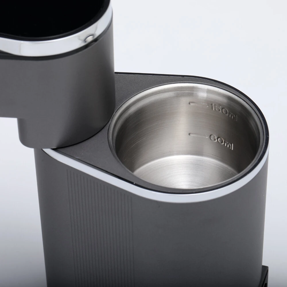 A csomagban van minden, amire szükséged lehet: a gép maga, egy mini alátét, tömőkanál, és persze a használati útmutató is, ha valami miatt elakadnál – bár szerintem nem fogsz. A színe letisztult titánszürke, ami abszolút passzol a modern konyhákba vagy irodai környezetbe.