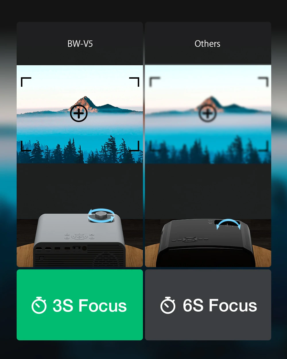 Alapból a BlitzWolf BW-V5 Max majdnem úgy néz ki, mint a BW-V5, de a szemfüles szemlélők láthatnak különbséget is. Az előlapján a BlitzWolf logó eltűnt, a helyére pedig szenzorok kerültek, ami nem is kérdés, hogy mi célt szolgál. Ami hiányzott az előző modellből, azt ebbe beletették, így ez már automata fókuszú és van benne szintén automata trapézkorrekció is. A felbontása ugyanúgy natív 1080p, a fényereje is ugyanaz, 9000 lumen, de teszteltük is, amely során ez elégségesnek is bizonyult.