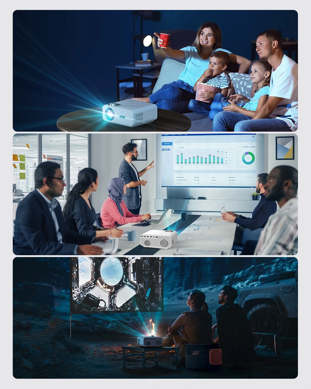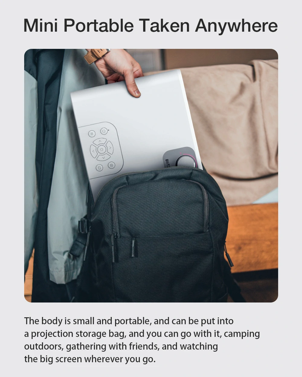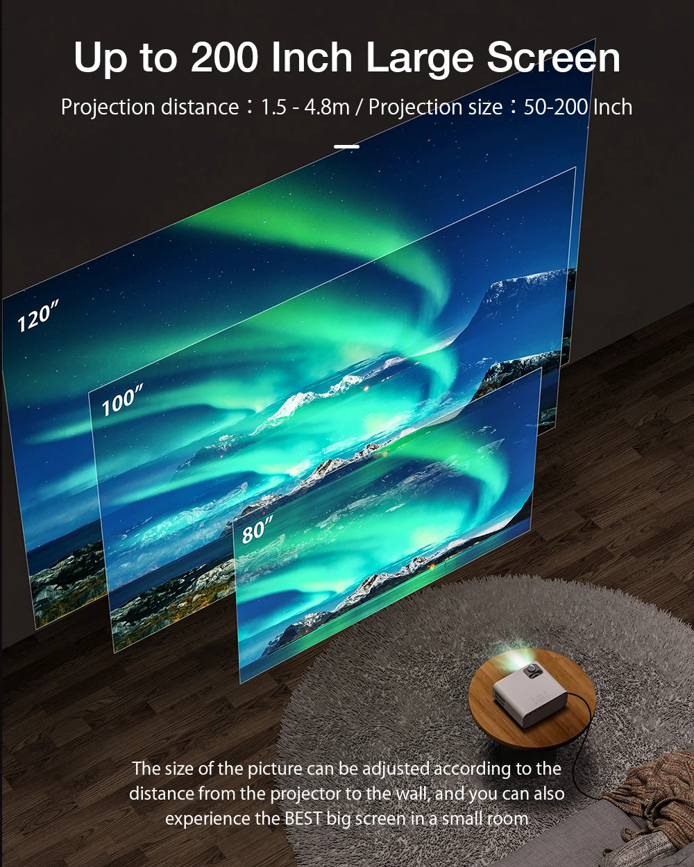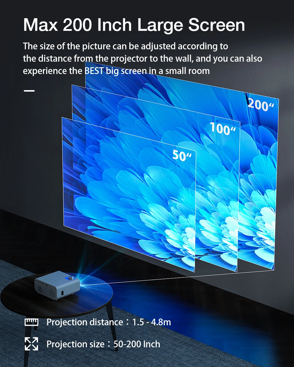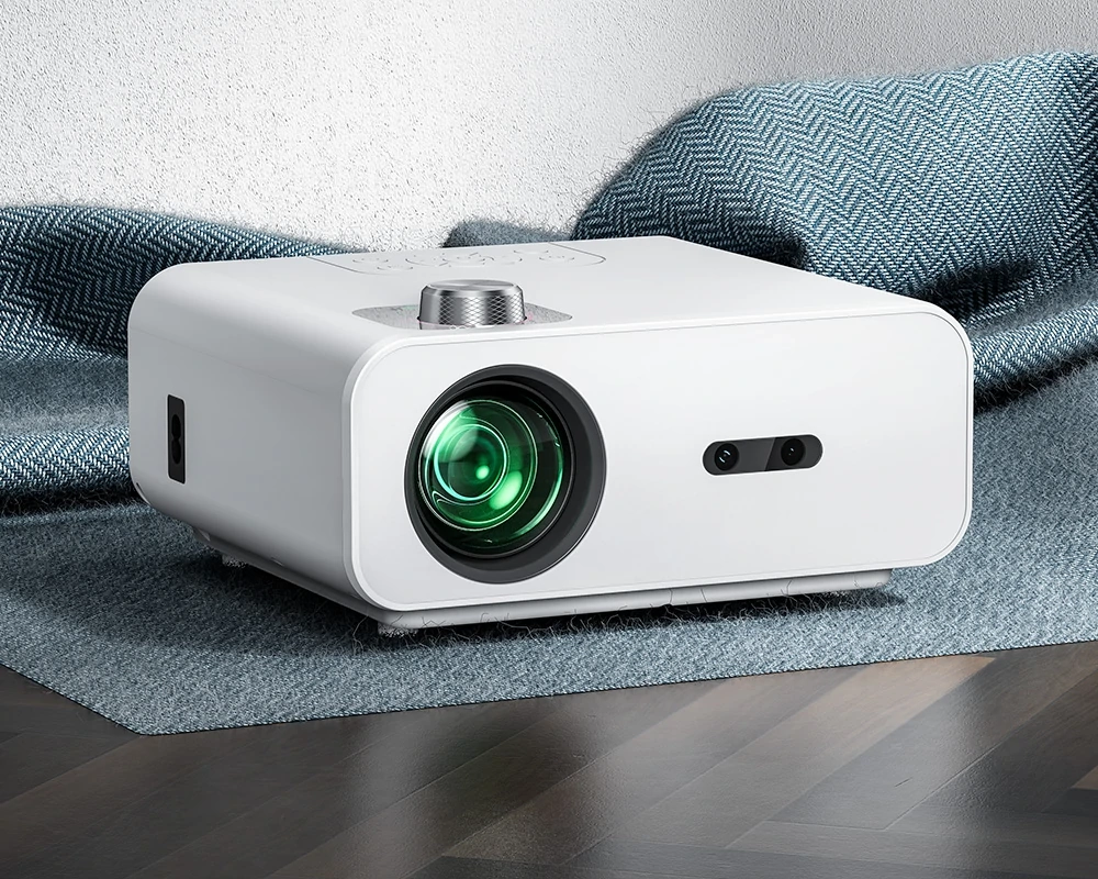 A vetített kép 50 és 200 inch között változik a vetítési távolsággal arányosan, ami minimum 1,5 és maximum 4,8 méter lehet. A tetejére kerültek a vezérlő gombok, de távvezérlőt is adnak hozzá, a hátulján pedig bőséges kínálatot találunk portokból, ugyanis van rajta 2 darab HDMI, szintén kettő USB bemenet, AV és jack dugalj, az oldalán pedig a tápnak a bemenete. Viszont itt már kapunk Bluetooth 5.0-t és WiFi 6-ot is. Ráadásul okosrendszerrel is ellátták, Android 9-es rendszer fut rajta.